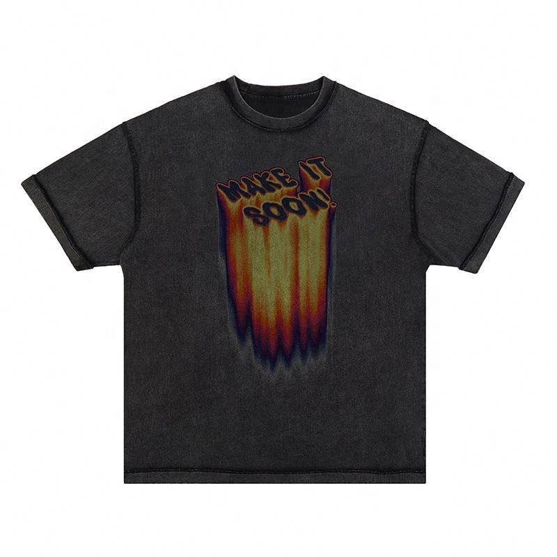 เสื้อยืดแฟชั่นย้อนยุคสีดำล้วนสำหรับผู้ชายเสื้อยืดพิมพ์ลาย DTG สำหรับขายส่ง