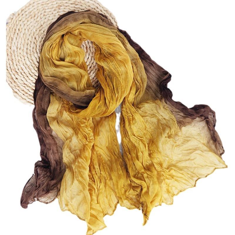 ผ้าพันคอแฟชั่นสำหรับผู้หญิงผ้าพันคอแนวไล่ระดับสีผ้าโพลีเอสเตอร์แบบย่นสำหรับฤดูใบไม้ผลิ