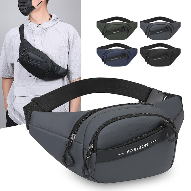 กระเป๋าคาดเอวแฟชั่นผู้ชายหลายชั้นความจุขนาดใหญ่เคลือบ PU กีฬากลางแจ้งกระเป๋าคาดหน้าอกกระเป๋าสะพายข้างสำหรับเดินทางทุกวัน