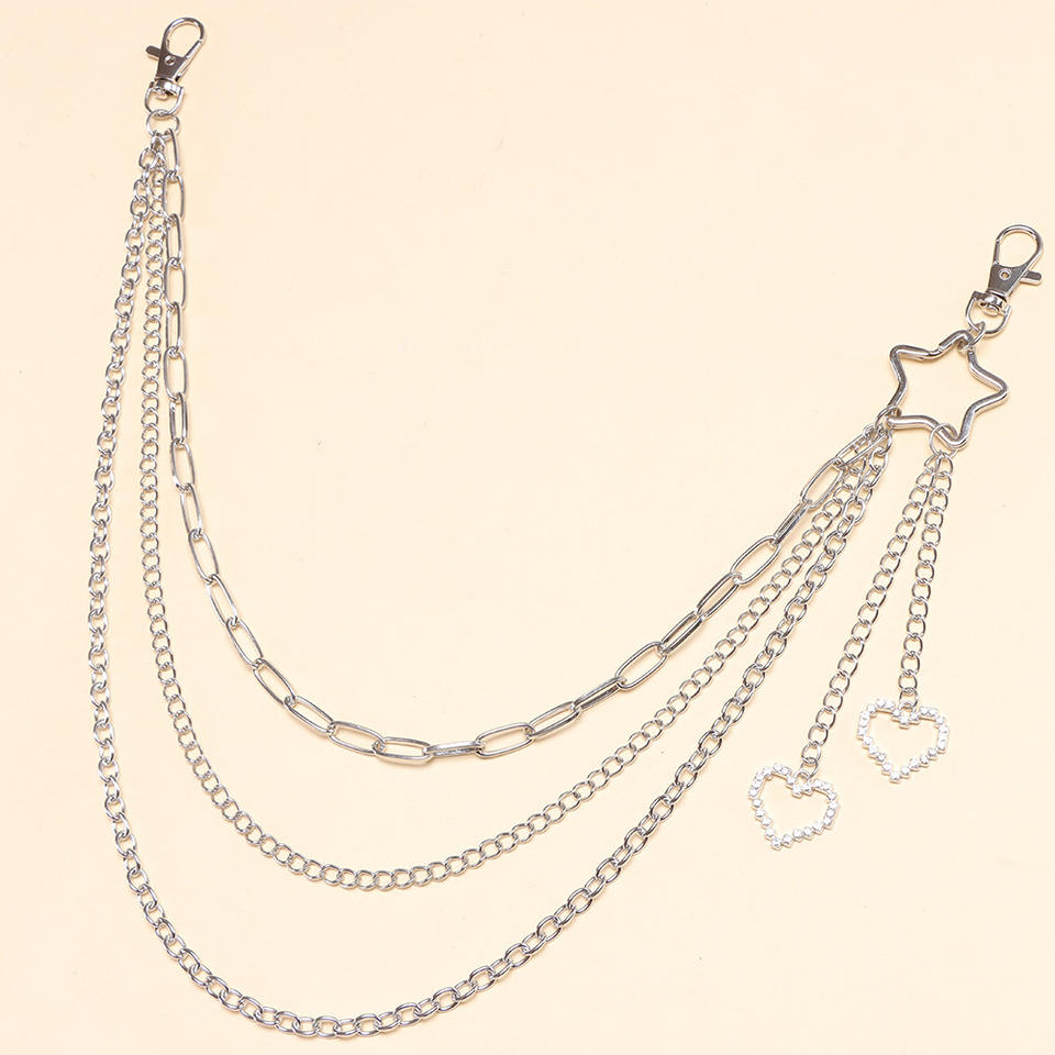 โซ่คาดเอวแฟชั่น จี้รูปดาวหัวใจ หลายชั้น โลหะผสมสังกะสี สไตล์ลำลอง ฮิปฮอป สำหรับกางเกงยีนส์