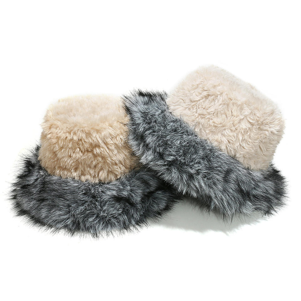 Fashion Warm Fuzzy Plush Winter Hat Womens Fluffy Furry Fisherman Cap Ear Protection Faux Fur Bucket Hats