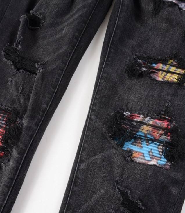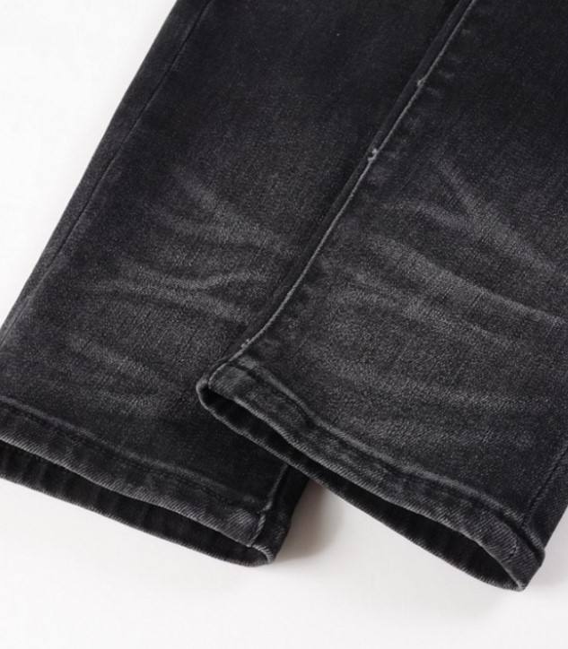 กางเกงยีนส์ทรงตรงสีดำขาดๆ แต่งจีบ ผู้ชาย สไตล์ลำลอง ยีนส์เดนิมทรงสกินนี่แบบวิสเกอร์ กางเกงยีนส์ดีไซน์เนอร์คุณภาพสูงสำหรับผู้ชาย