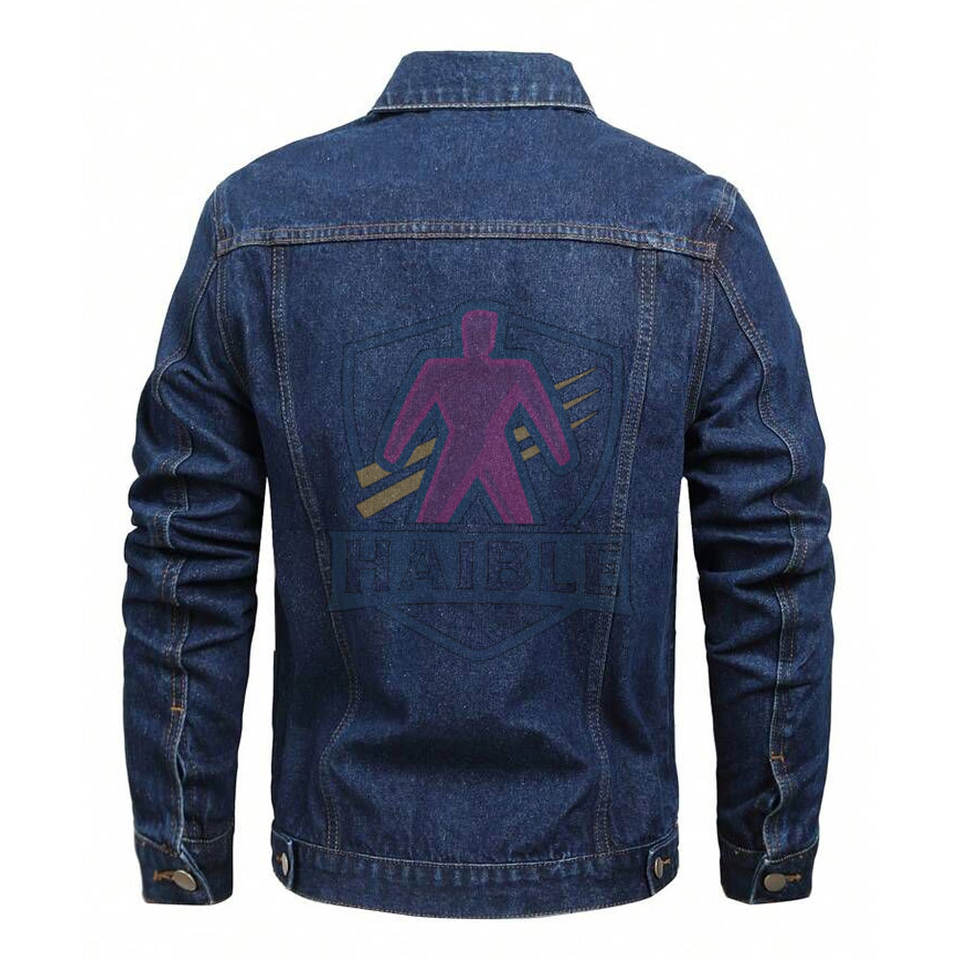 เสื้อแจ็คเก็ตยีนส์ผู้ชายแฟชั่น โลโก้ด้านหน้า ระบายอากาศ แห้งเร็ว ผ้าฝ้าย 100% กันลม ขายดี เสื้อแจ็คเก็ตฤดูหนาว