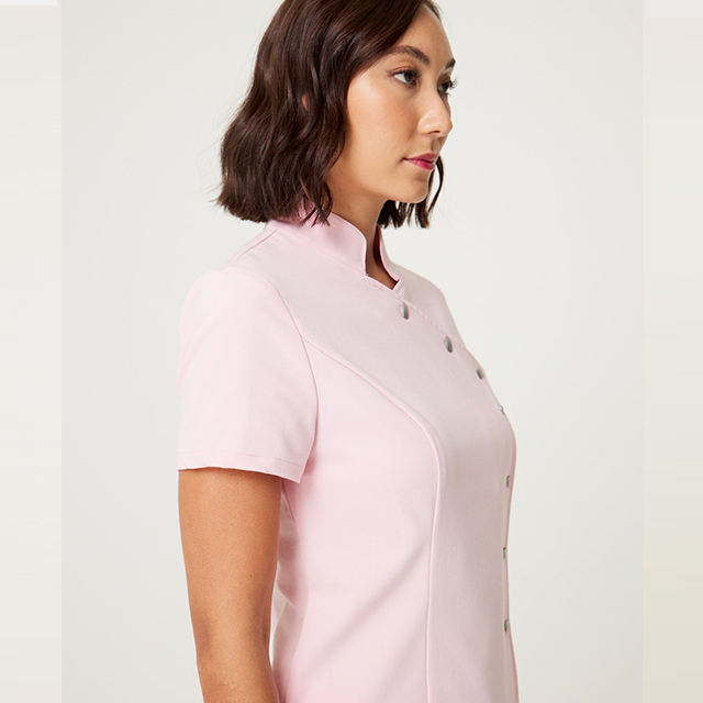 ชุดยูนิฟอร์มพยาบาลแฟชั่นทันสมัย ดีไซน์กระเป๋าหลายช่อง คอปก แขนสั้น ผลิตจากโพลีเอสเตอร์ 72% เรยอน 21% สแปนเด็กซ์ 7% รับผลิตตามแบบสำหรับโรงพยาบาล