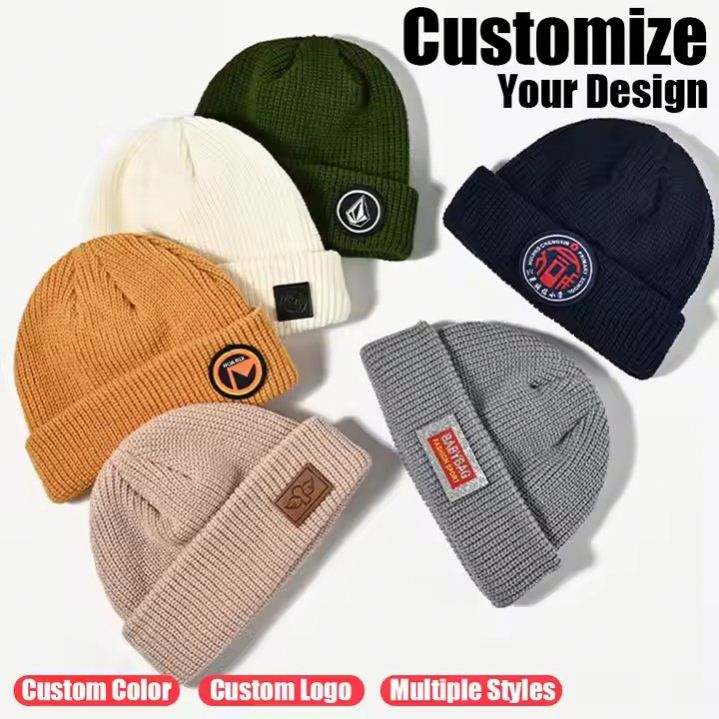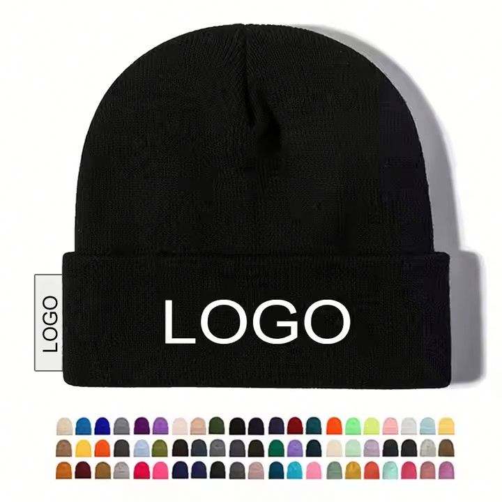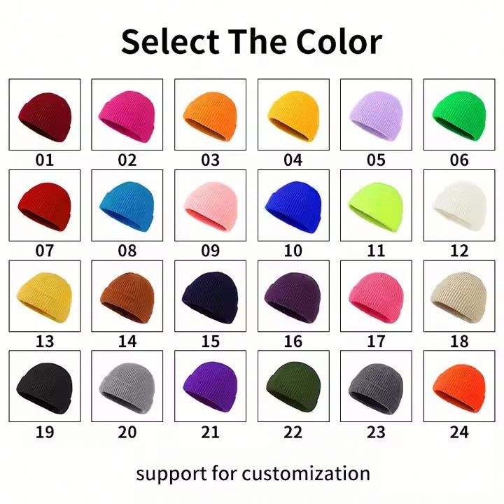 หมวกบีนนี่ไหมพรมอะคริลิคสีพื้นปักโลโก้ตามสั่งสำหรับขายส่งแฟชั่น หมวกไหมพรมอุ่นๆสำหรับฤดูหนาวพร้อมโลโก้แบบกำหนดเอง