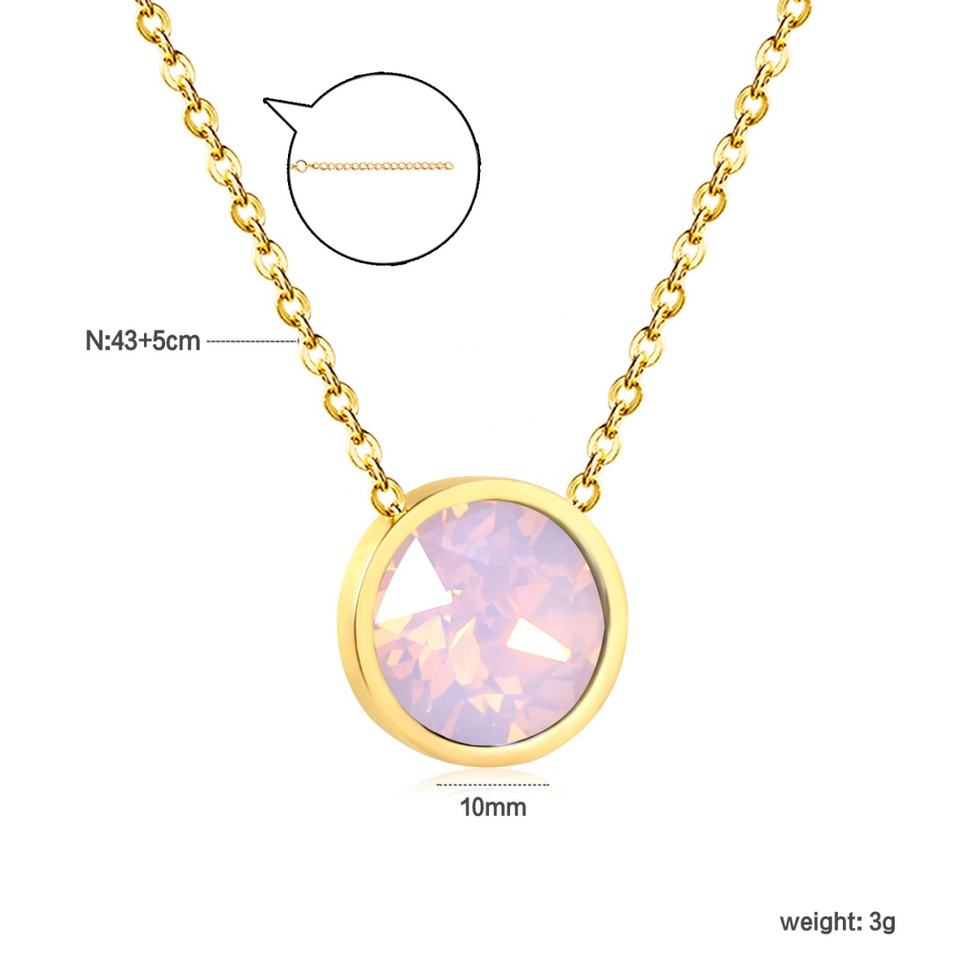 สร้อยคอจี้เพชรทรงกลมเรียบง่ายสไตล์มินิมอล ขายส่งแฟชั่น ชุบทอง 18K สร้อยสแตนเลสหลากสี
