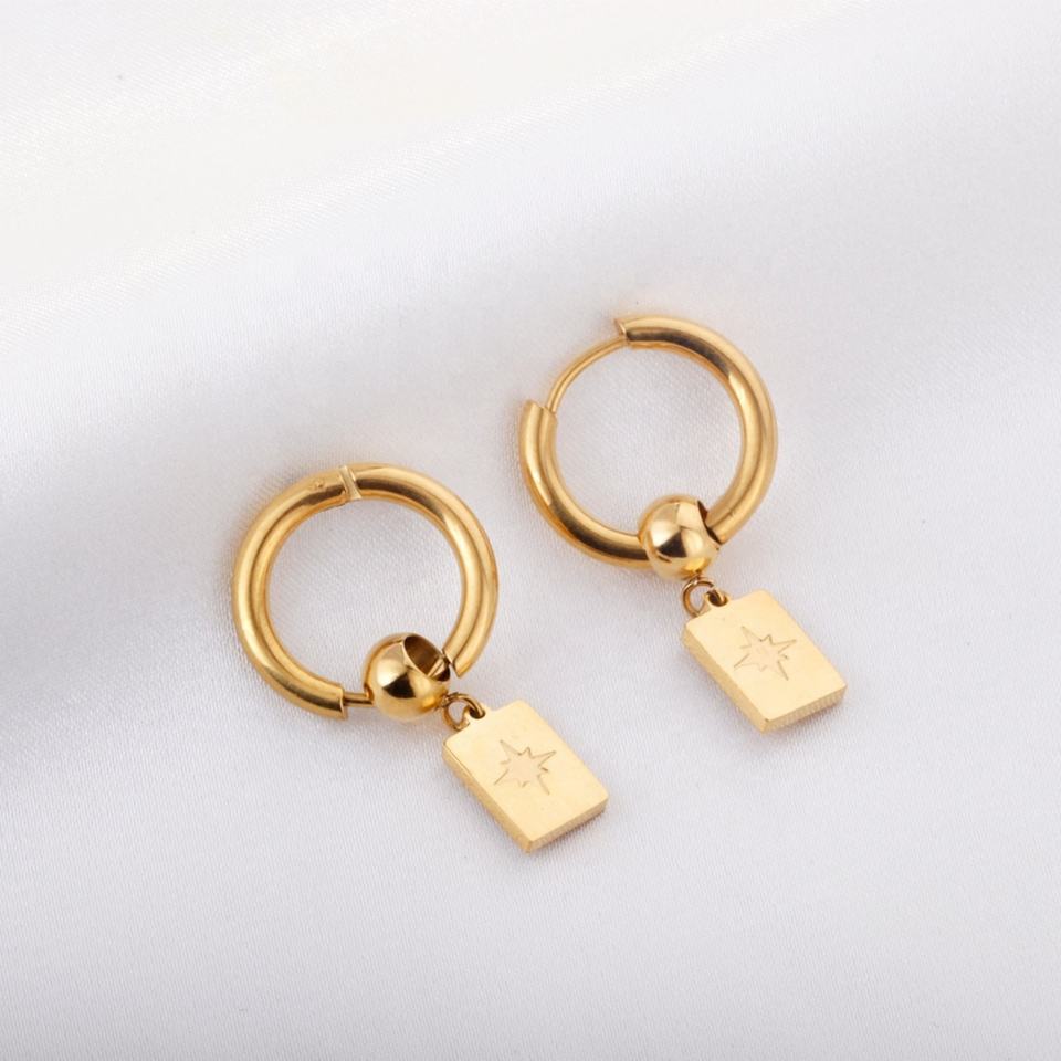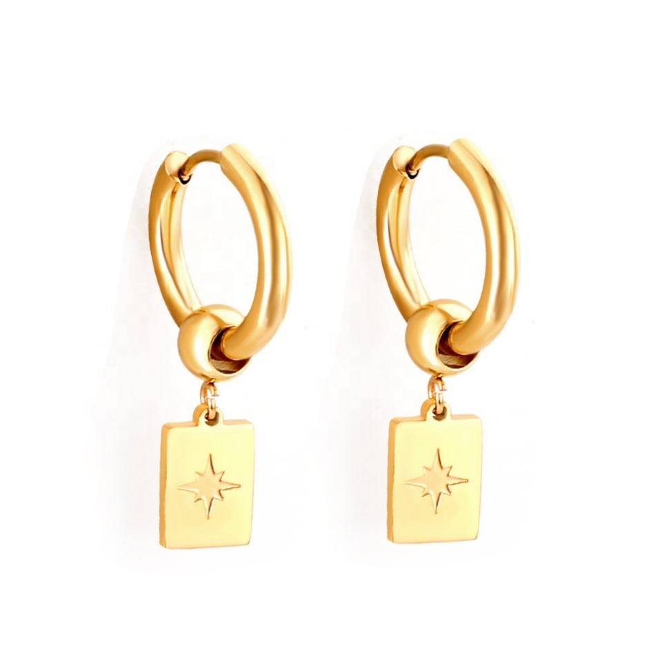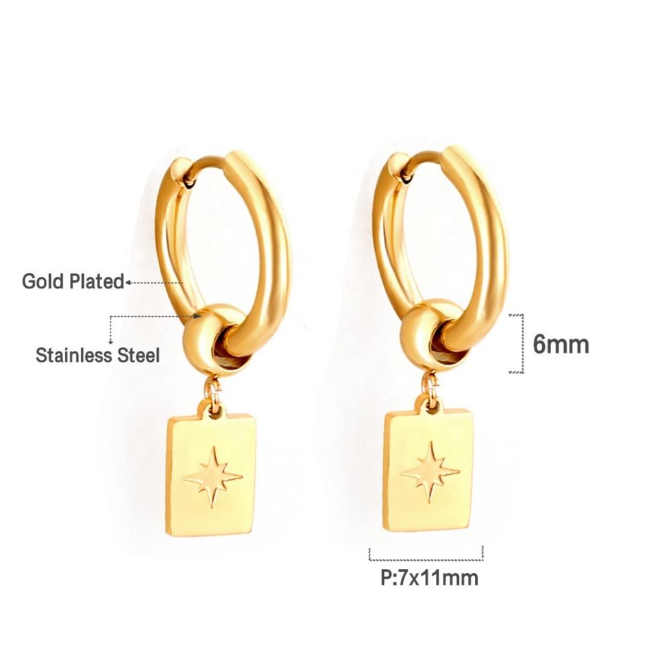ต่างหูแฟชั่นขายส่ง สแตนเลสชุบทอง 18K รูปทรงหยดน้ำ ประดับลูกปัดรูปดาว ต่างหูห่วงสำหรับผู้หญิง