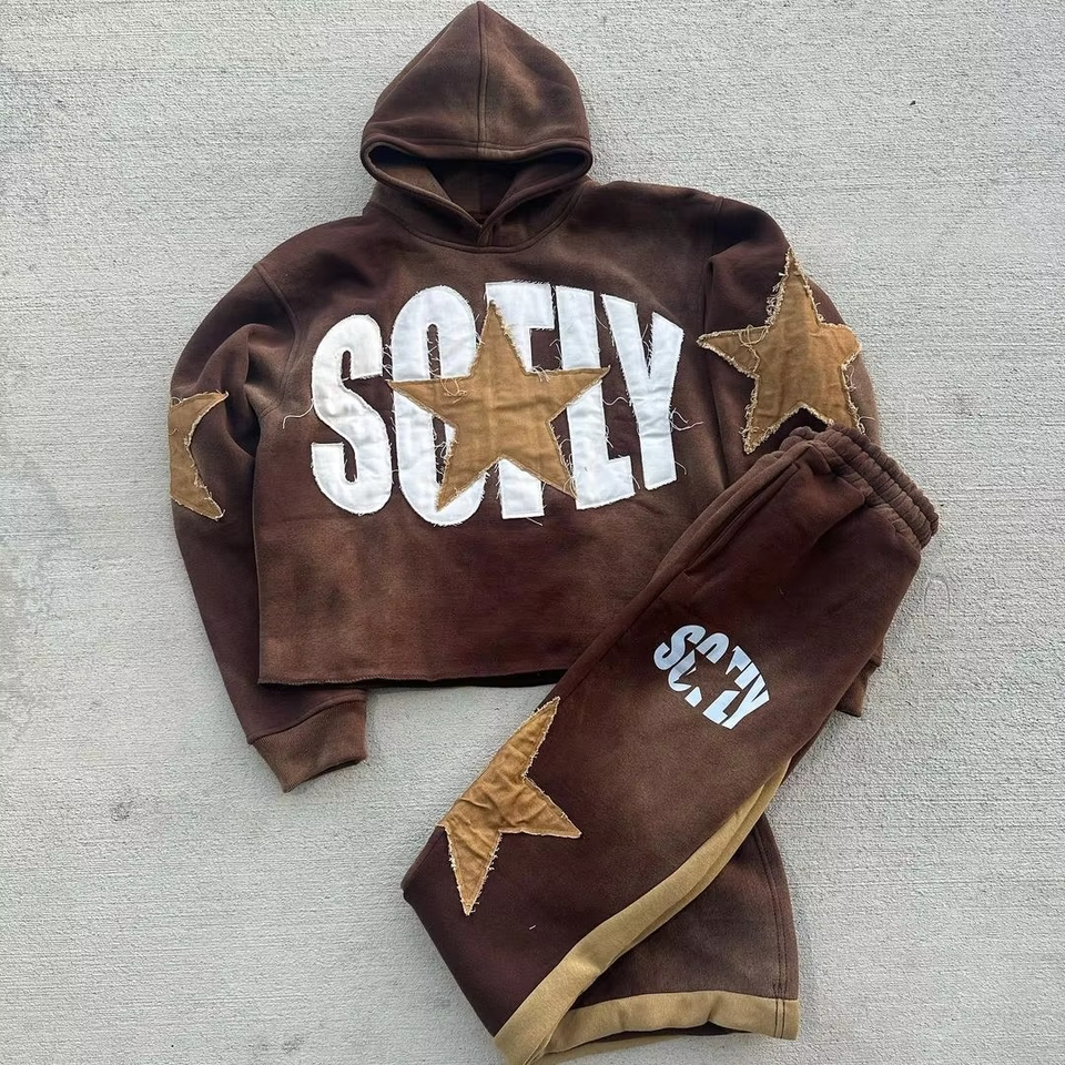 ชุดเซ็ตเสื้อฮู้ดดี้และกางเกงวอร์มทรงขาบานปักโลโก้ตามสั่ง คุณภาพสูง ชุดกีฬา ชุดวอร์ม กางเกงขายาว ชุดสองชิ้น ชุดวิ่งออกกำลังกาย