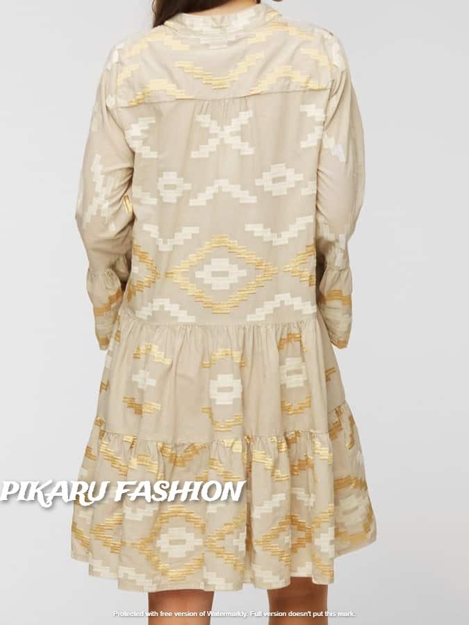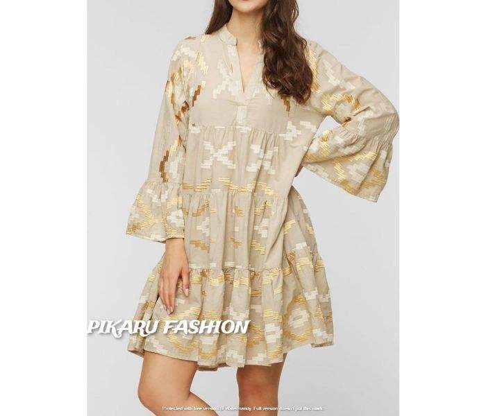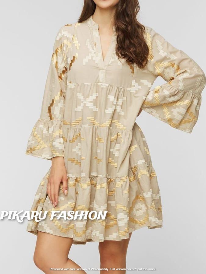 เสื้อผ้าแฟชั่นผู้หญิงแขนยาวปักลาย,ชุดเดรสสั้นสไตล์ยิปซีทันสมัยชุดเดรสลำลองงามสง่า