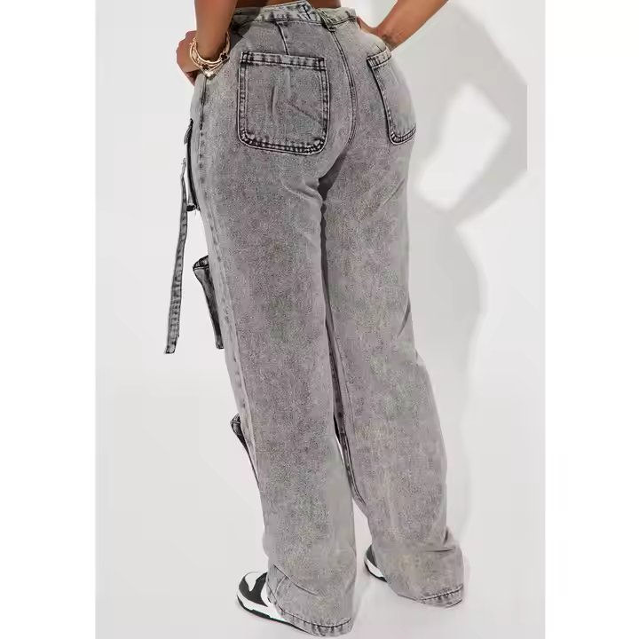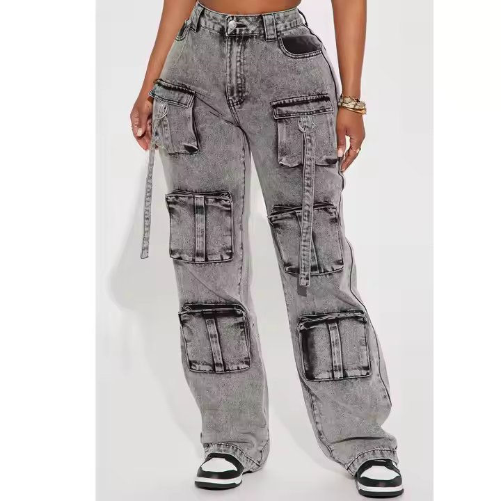 Fashion Women Corduroy Casual Cargo Boyfriend Pants Breathable Drawstring Closure Light Wash Autumn High Quality