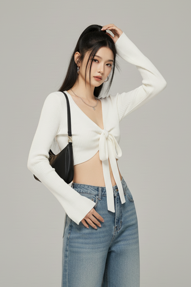 หมายเลขรุ่น:RIBBED TIE FRONT CROP TOP