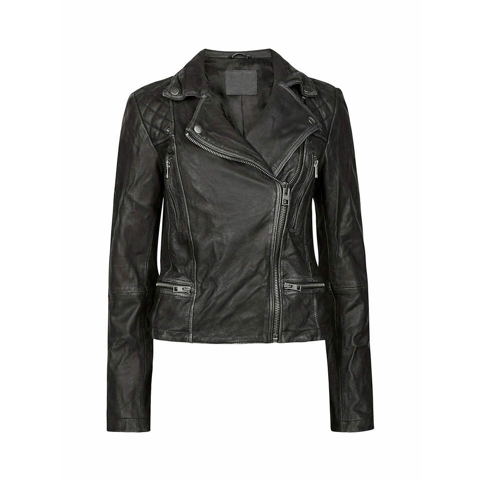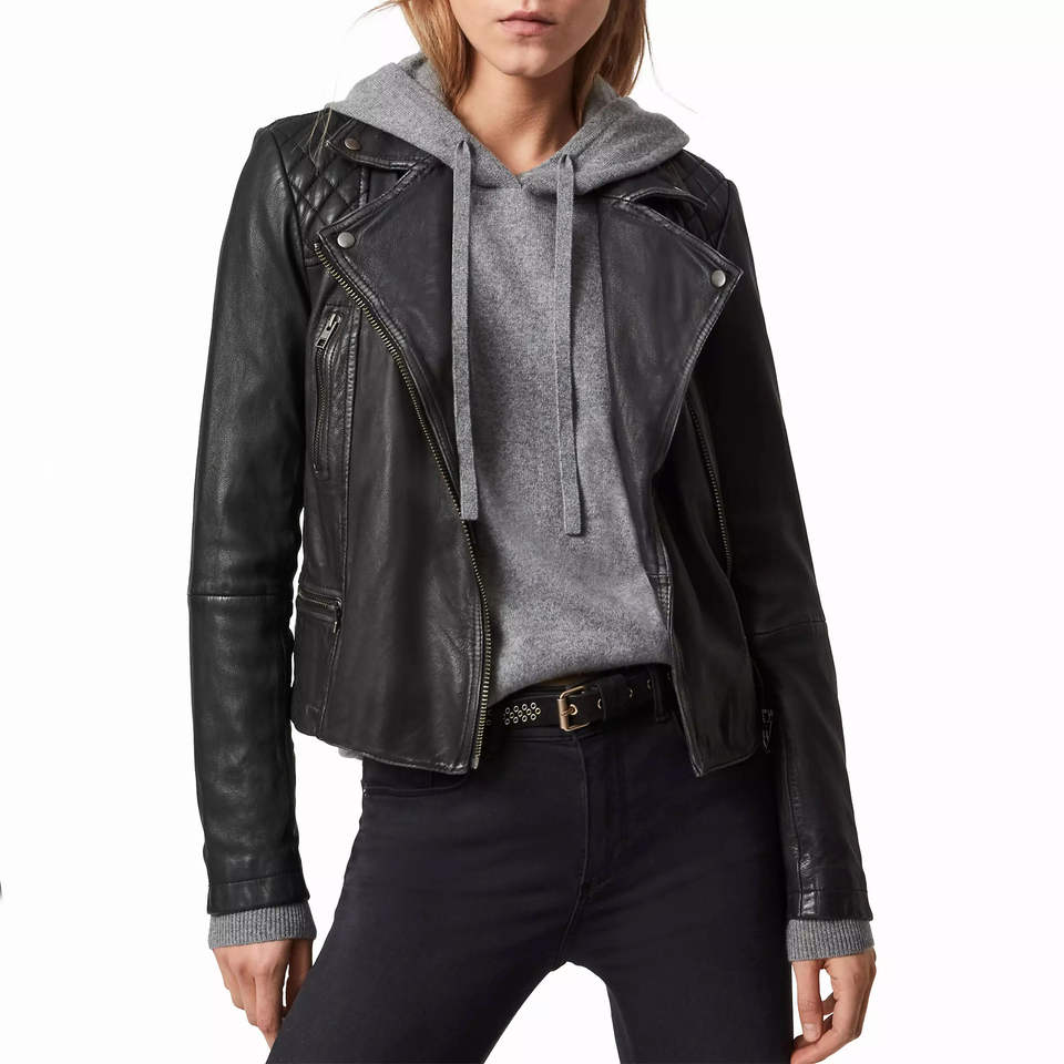 แฟชั่นผู้หญิงเสื้อแจ็คเก็ตหนังแกะแท้คุณภาพสูงนุ่มบางแฟชั่นผู้หญิงเสื้อแจ็คเก็ตหนังสีดำสไตล์