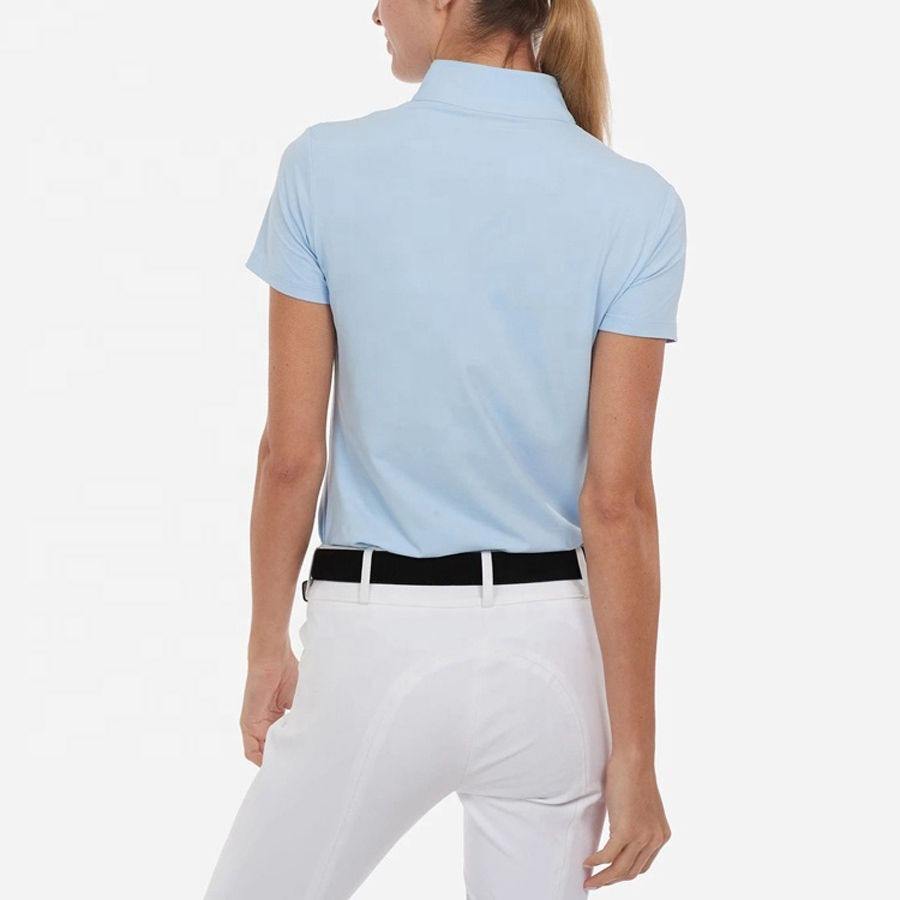 เสื้อผู้หญิงแฟชั่นสำหรับขี่ม้า เล่นกอล์ฟ ผ้าถักเนื้อโพลีเอสเตอร์ แบบเรียบ ปรับแต่งได้ สไตล์ลำลอง ขายส่ง คุณภาพสูง