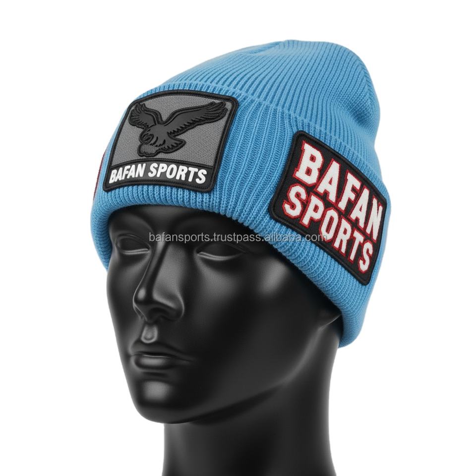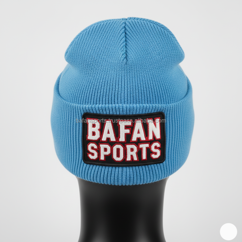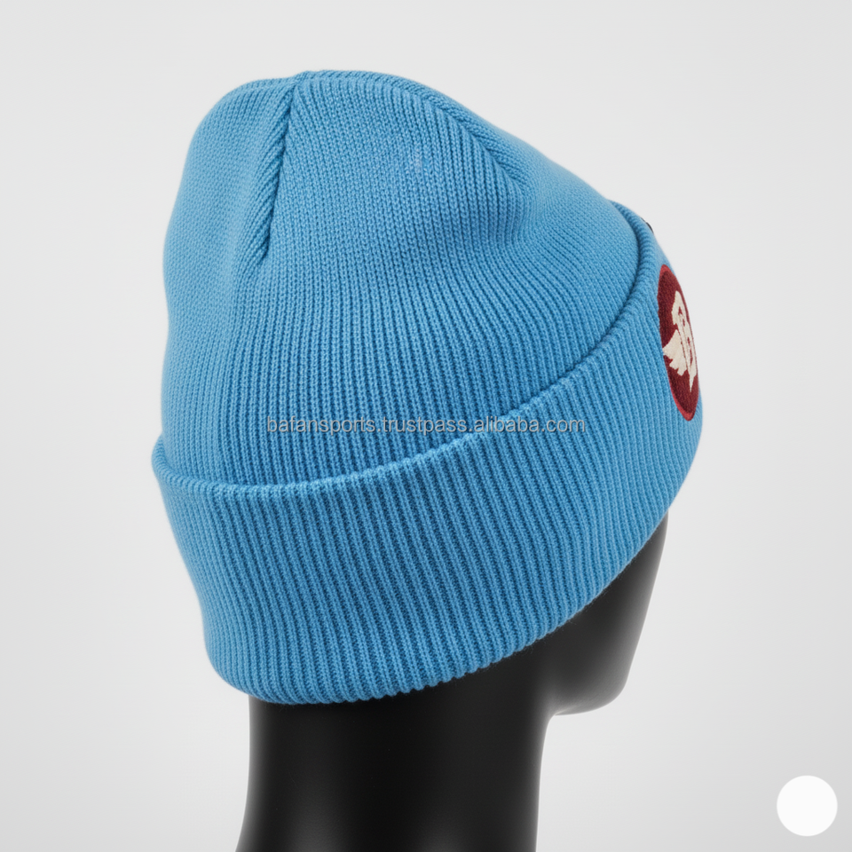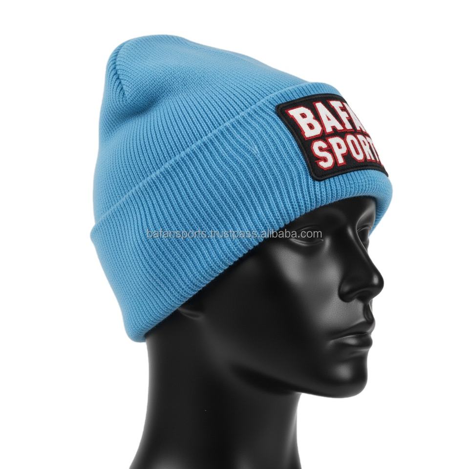 หมวกบีนนี่ถักสำหรับผู้หญิงแฟชั่นหมวกบีนนี่ผ้าอะคริลิคหนา300 GSM สีฟ้าปักโลโก้ได้ตามต้องการ