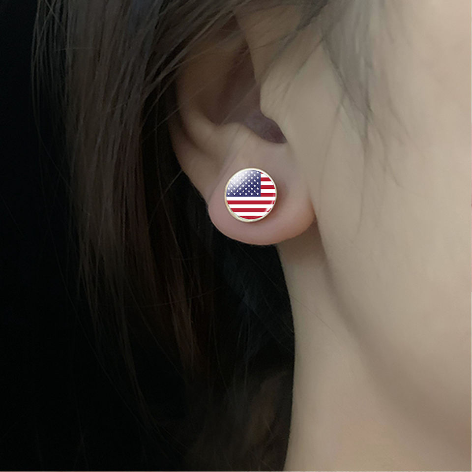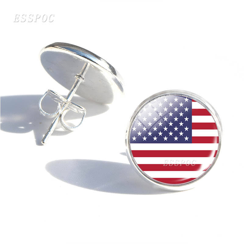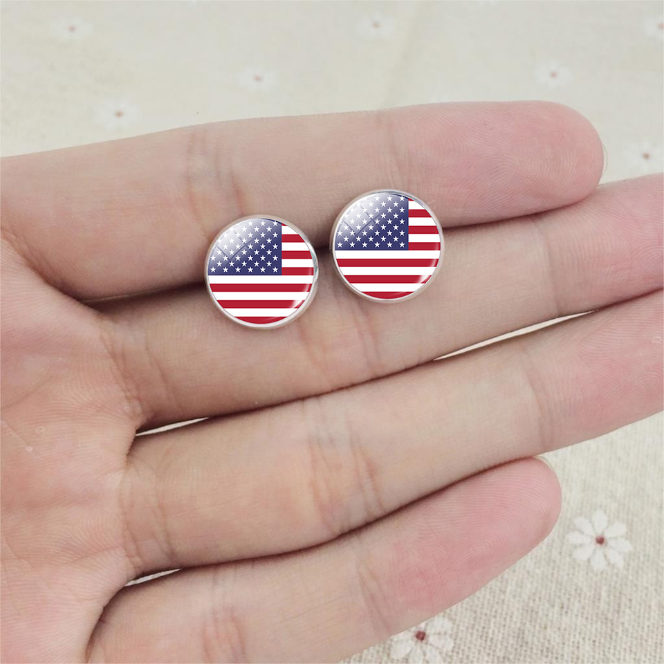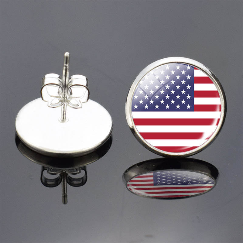 แฟชั่นผู้หญิงชุบเงินต่างหูธงประจำชาติแคนาดาอเมริกาเม็กซิโกจาเมกาบาฮามาสคิวบาบาร์เบโดสแก้วโดมต่างหูสตั๊ด
