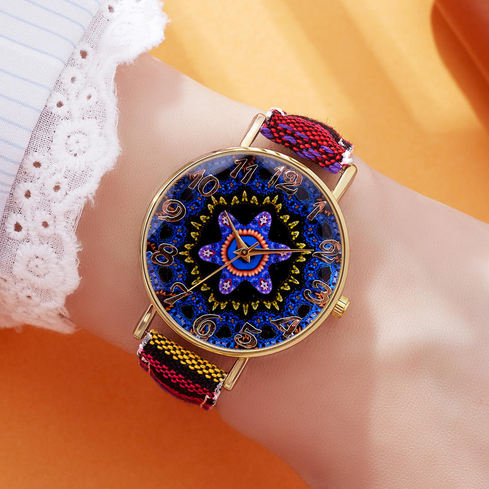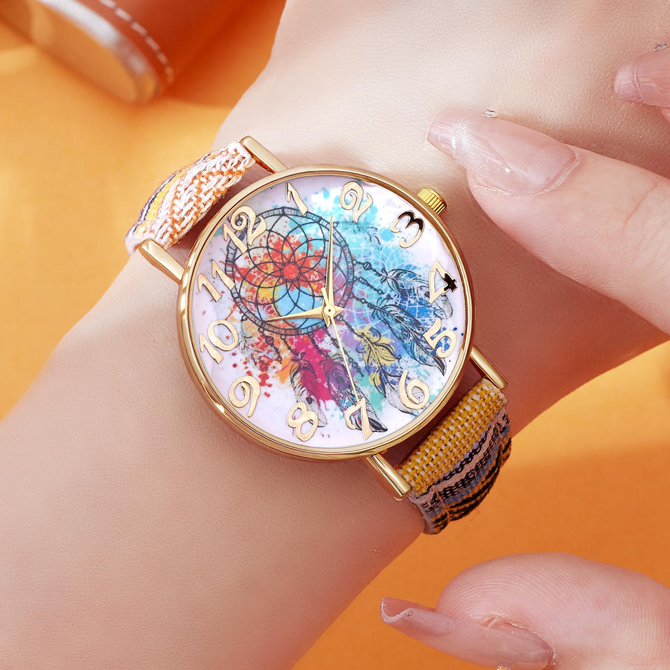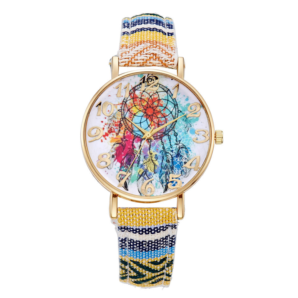 นาฬิกาผู้หญิงแฟชั่นวินเทจ Dreamcatcher ต้นไม้แห่งชีวิตดอกไม้พิมพ์ลายถักนาฬิกาควอตซ์สำหรับผู้หญิงของขวัญนาฬิกา reloj mujer