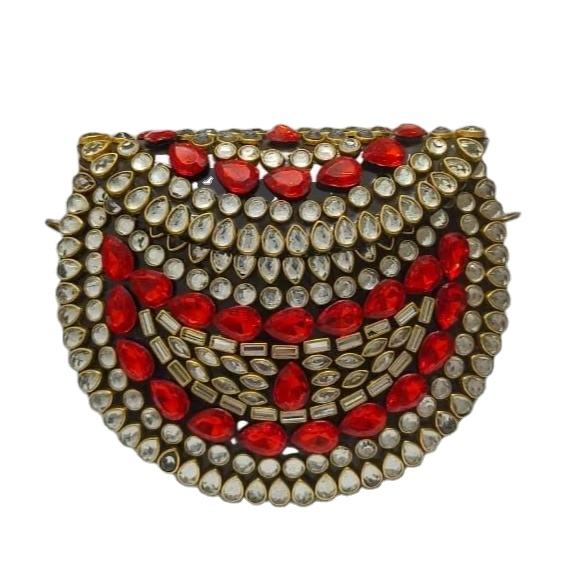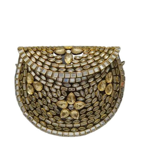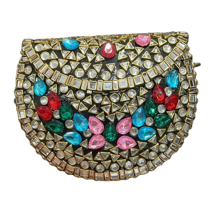 กระเป๋าคลัทช์สำหรับออกงานกลางคืนสำหรับผู้หญิง กระเป๋าสะพายไหล่สไตล์อินเดีย กระเป๋าคลัทช์ปักลาย Kundan กระเป๋าคลัทช์ Kundan เทียบกับกระเป๋าลาย Polki