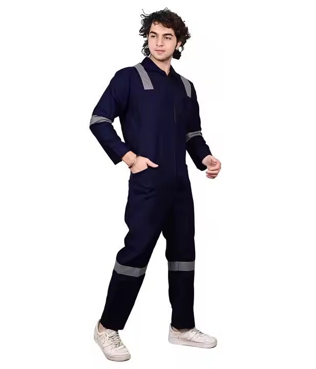 ชุดเครื่องแบบทำงานแฟชั่นผ้าคอตตอนเพื่อความปลอดภัยสารหน่วงไฟสะท้อนสารเคมี