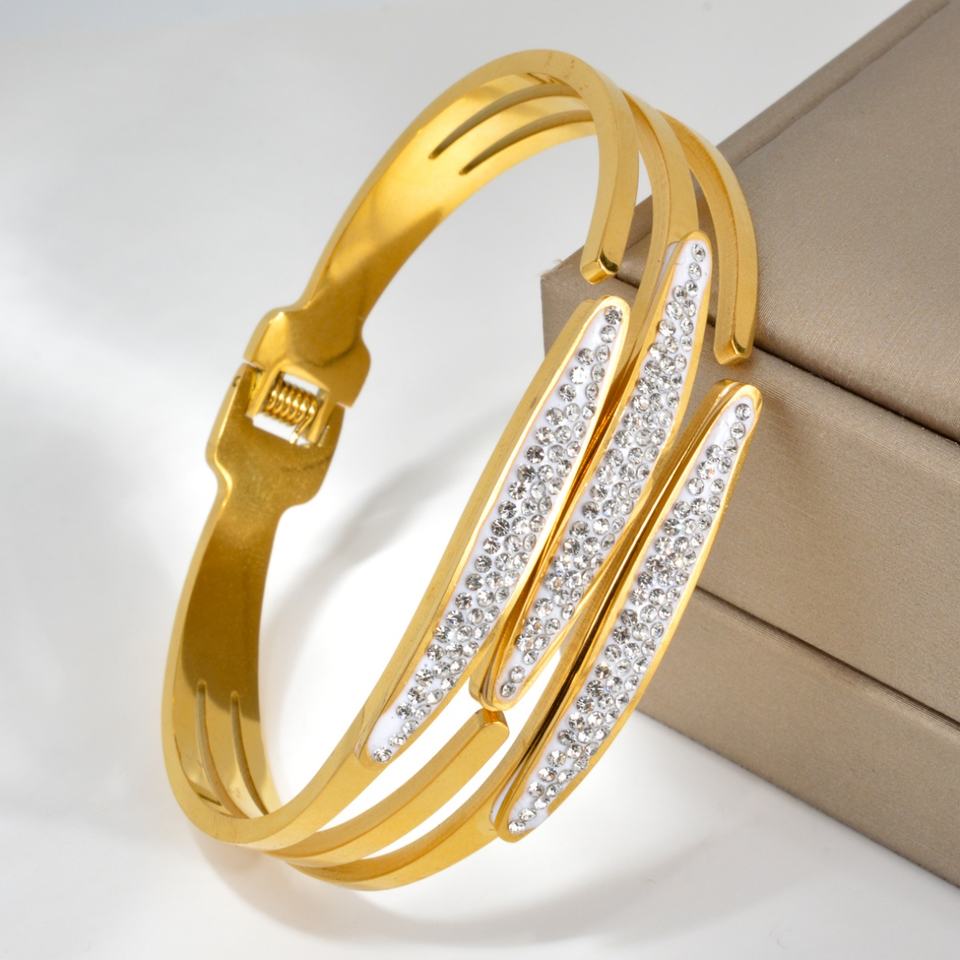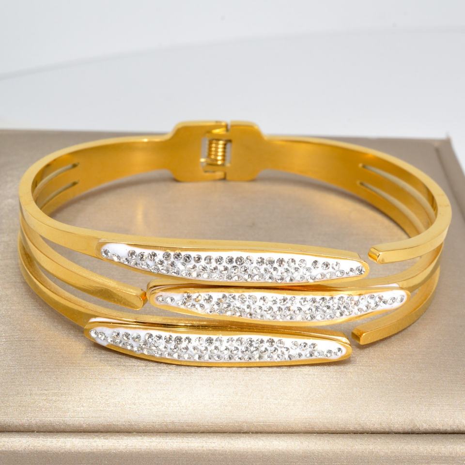 กำไลข้อมือสแตนเลสชุบทอง 14k ประดับเพชรซิรคอนทรงโรมัน สำหรับผู้หญิง