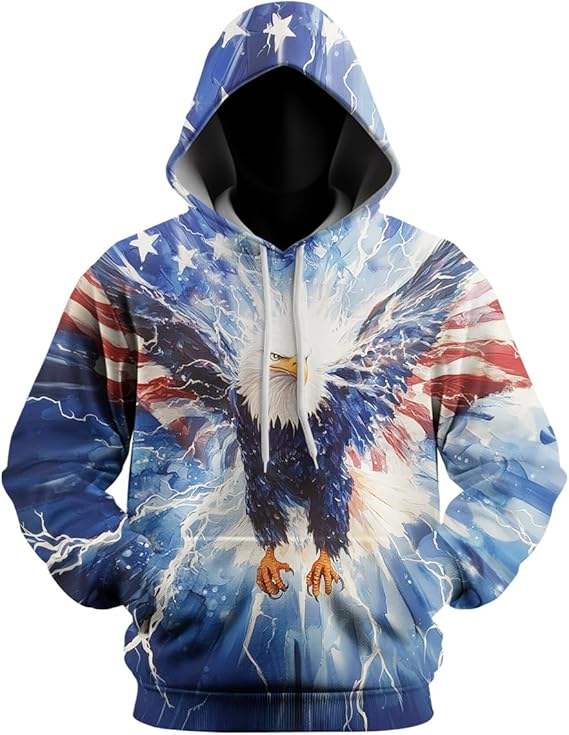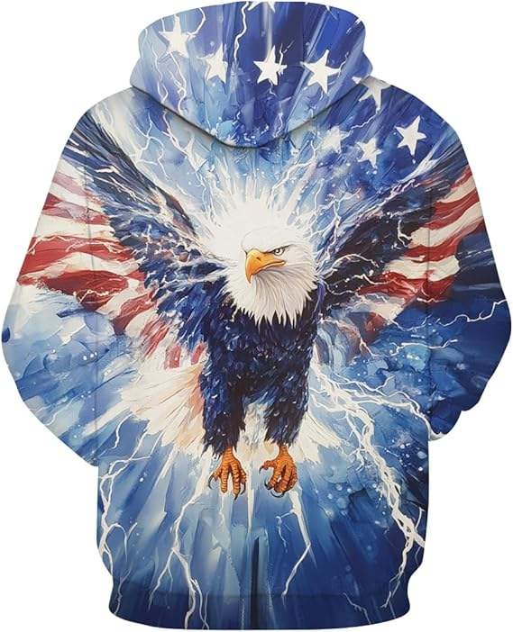 เสื้อฮู้ดผู้ชายผ้าฝ้ายผสมลายธงชาติอเมริกันมีฮู้ดเสื้อสเวตเชิ้ตลายนกอินทรีมีฮู้ดแบบสวมหัวลายกราฟิก
