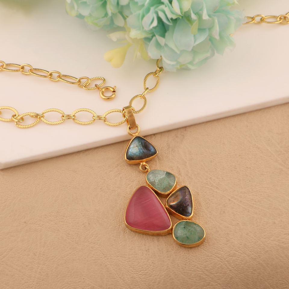 ตาสีชมพูลาบราดอไรต์ควอตซ์สตรอเบอร์รี่สีเขียวหินหลัก