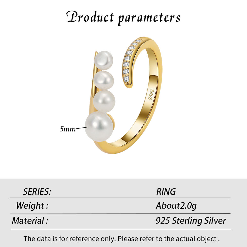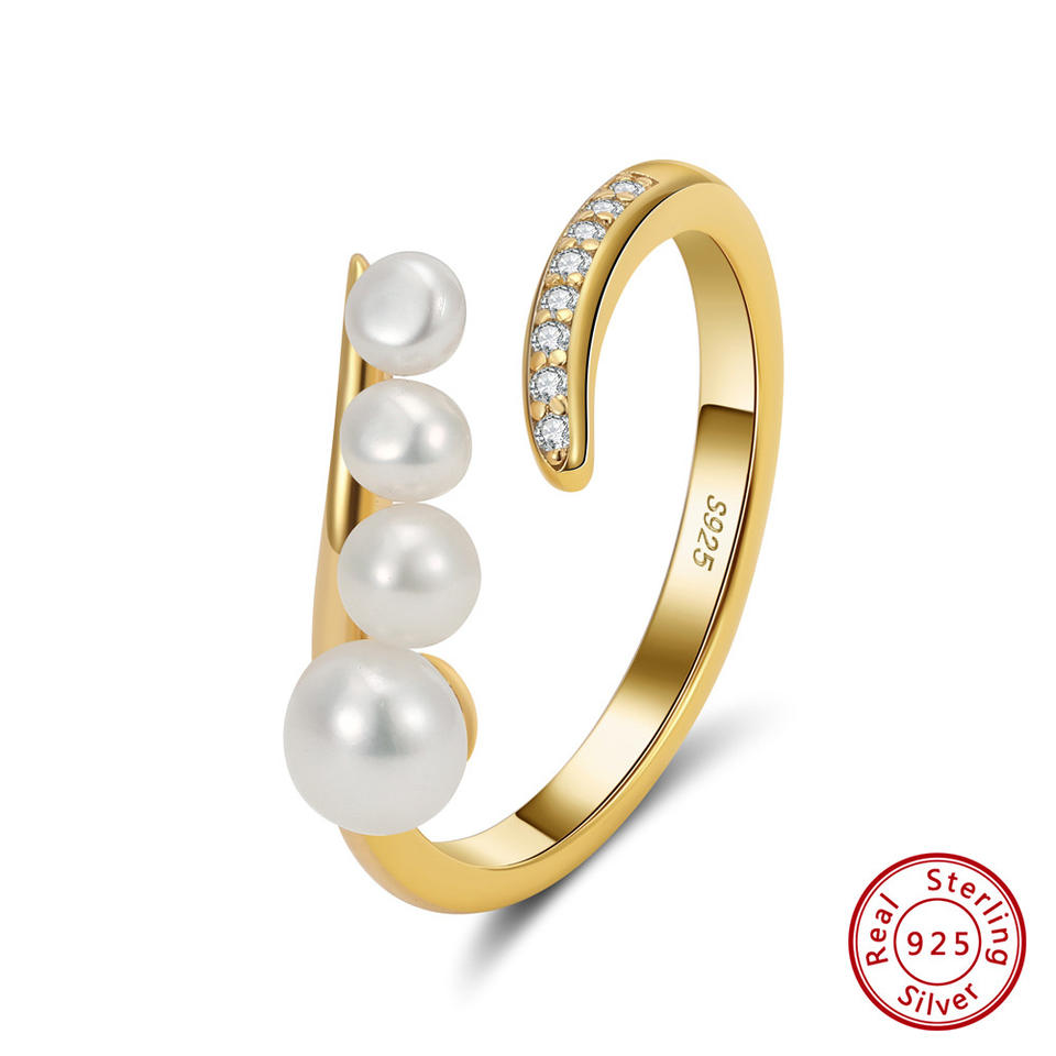 Fashion jewelry S925 sterling silver natural freshwater pearl open adjustable ring 14k gold plated ring female