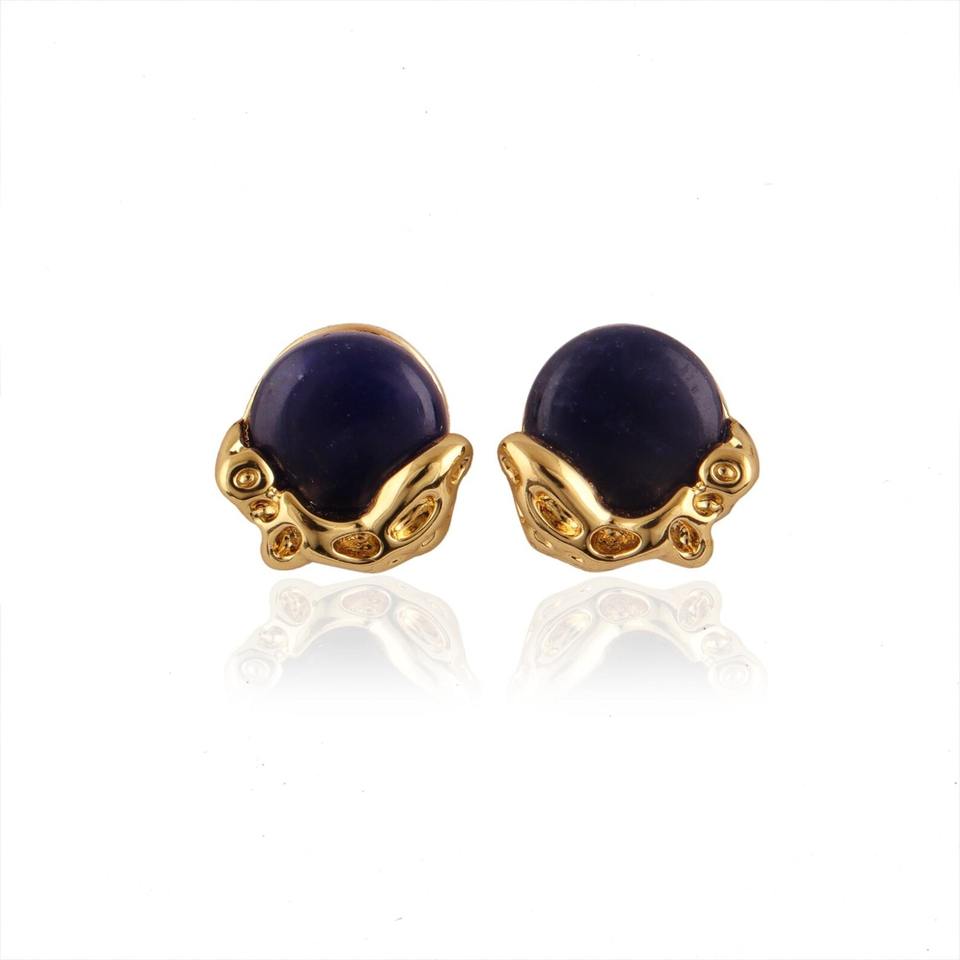 ต่างหูแฟชั่นประดับโซดาไลต์ พลอยธรรมชาติ ดีไซน์เนอร์ ชุบทอง 18k คุณภาพดี ทนทาน เหมาะสำหรับงานแต่งงาน