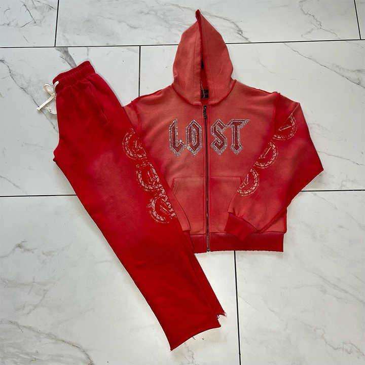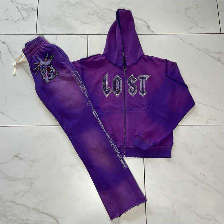 เสื้อฮู้ดแฟชั่นประดับพลอยเทียมมีดีไซน์เป็นประกายชุดวอร์มและกางเกงปรับแต่งได้