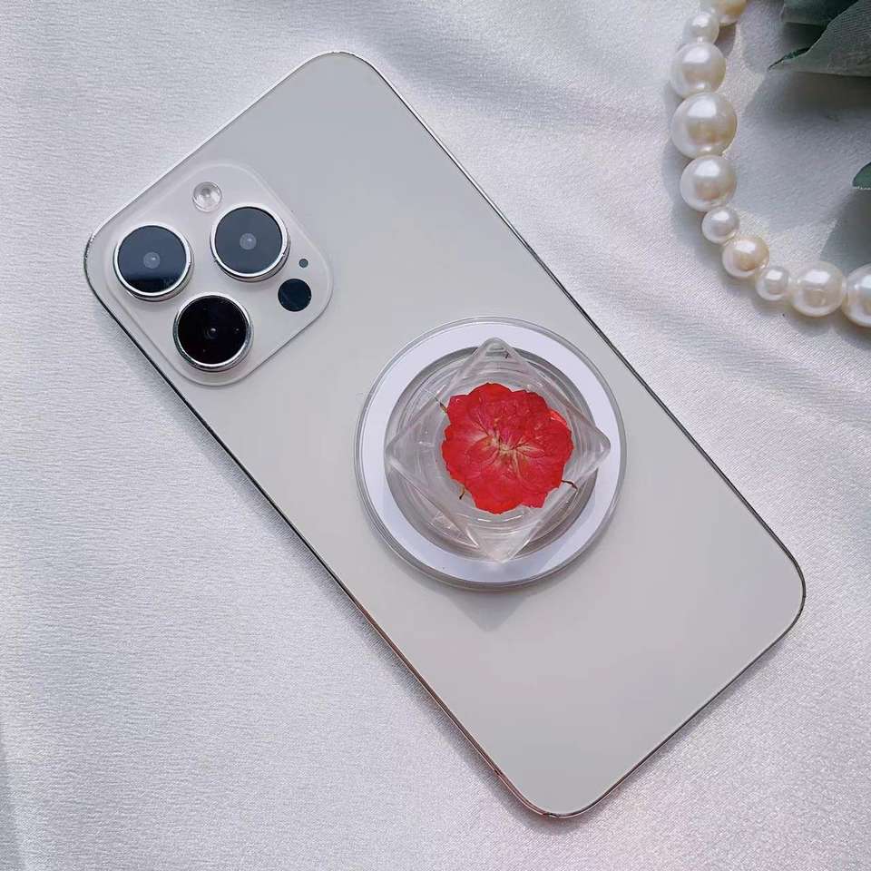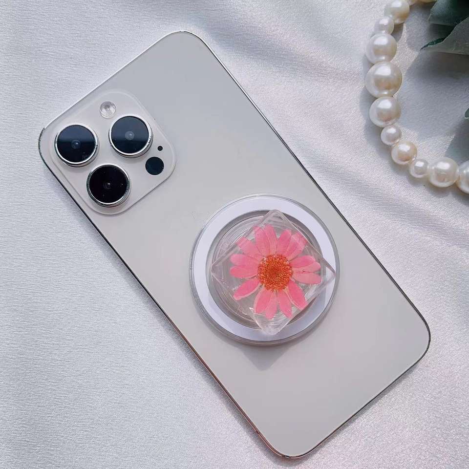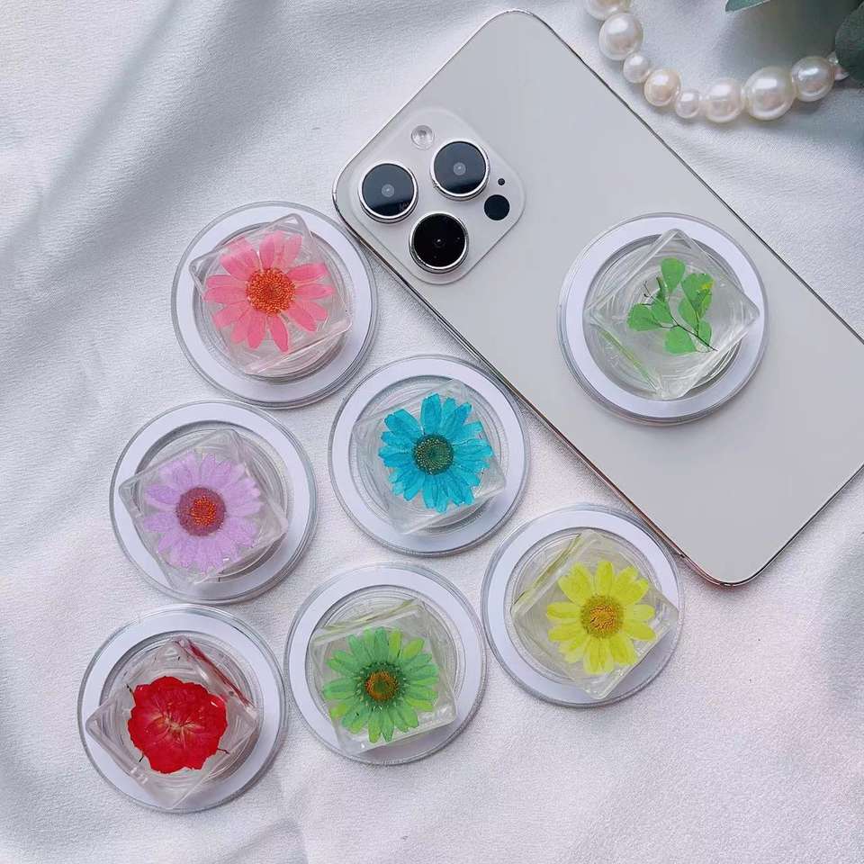 ขาตั้งโทรศัพท์ตั้งโต๊ะรองรับขาตั้งโทรศัพท์ตั้งโต๊ะดอกเดซี่ทำแห้งแม่เหล็กกล้องส่องทางไกลโปร่งใสทรงสี่เหลี่ยมแฟชั่น