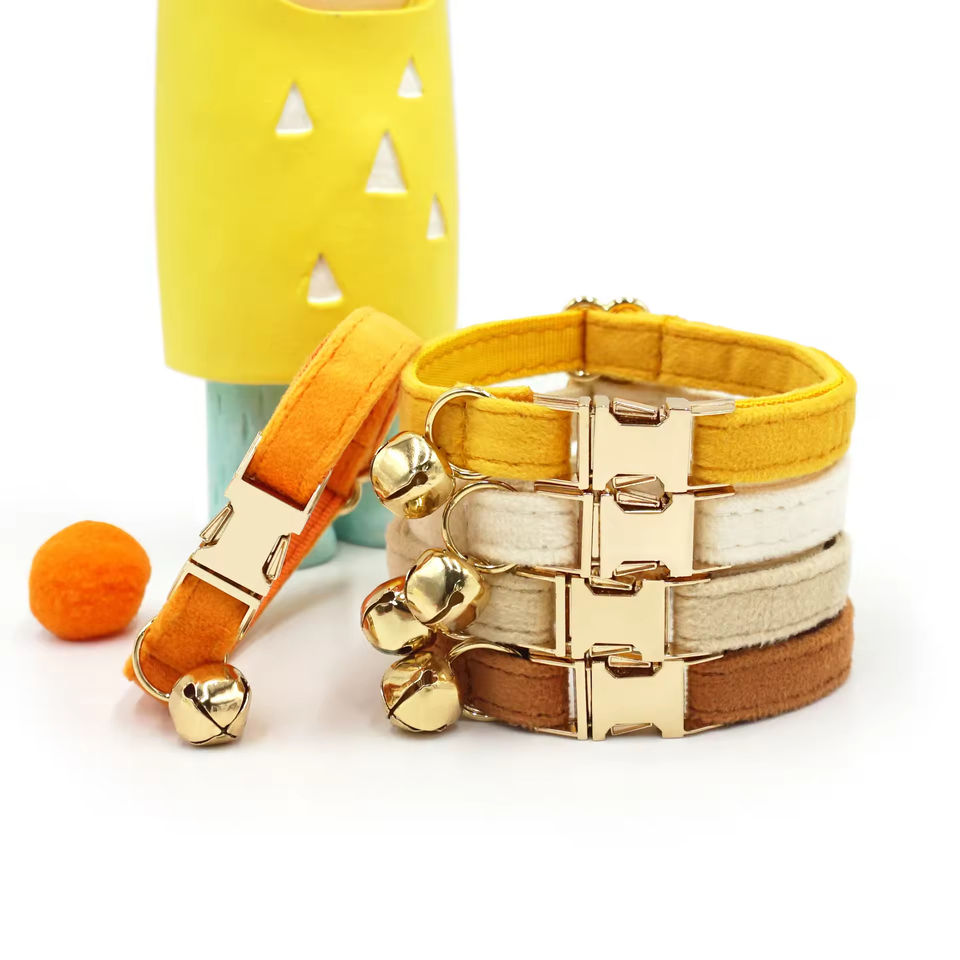 ปลอกคอสัตว์เลี้ยงกำมะหยี่แฟชั่น ปรับแต่งได้ ฟังก์ชั่นเสริม ตัวล็อคสีต่างๆ พร้อมกระดิ่งแมว