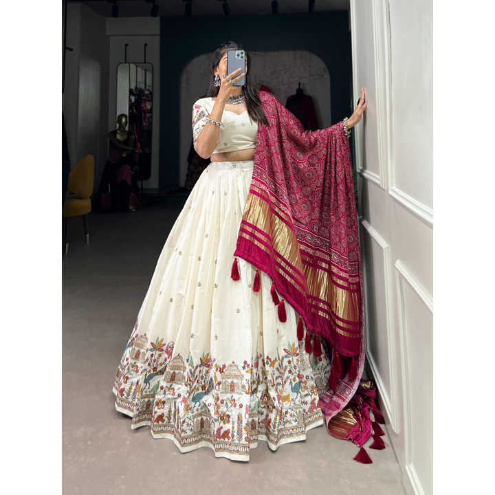 ชุดเลเฮนกาโชลีผ้าฝ้ายคัดพิเศษสไตล์บอลลีวูดจากแฟชั่นฮาร์เบอร์ พร้อมผ้าคลุมไหล่ปักดิ้นทอง สำหรับงานแต่งงานและงานพรอมในฤดูใบไม้ร่วง