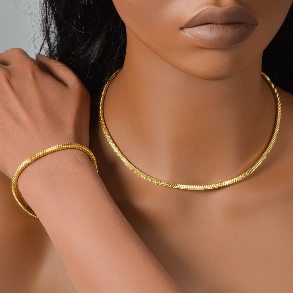 ชุดสร้อยคอและกำไลข้อมือทองชุบ 14K ดีไซน์เรขาคณิตคลาสสิกสีทองสำหรับงานแต่งงานและงานหมั้น ขายส่ง