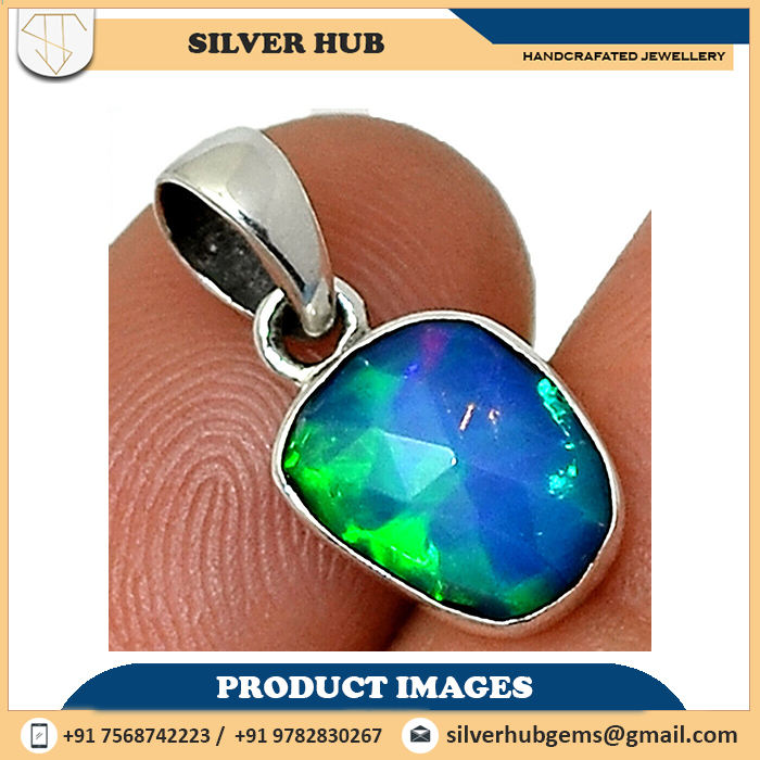 เครื่องประดับอัญมณีโอปอลแบบเหลี่ยมเพชรพลอยสีเงินสเตอร์ลิง925ทันสมัย