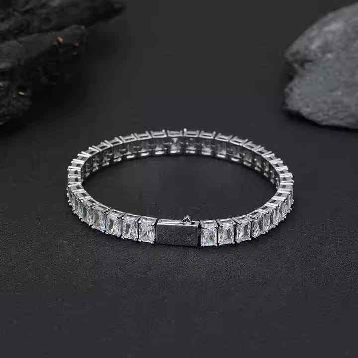 สร้อยข้อมือสุดทันสมัยทำจากเงินสเตอริง925สำหรับเล่นเทนนิสสร้อยข้อมือเพชรแบบฮิปฮอปสำหรับเป็นของขวัญแต่งงาน