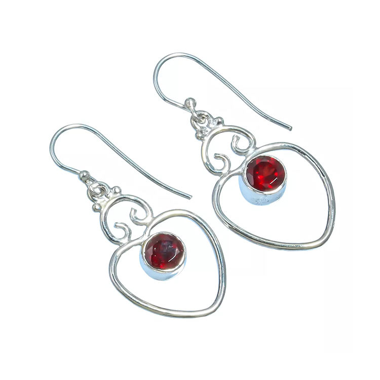 แฟชั่น925เงินสเตอร์ลิงต่างหูพลอยโกเมนธรรมชาติทำด้วยมือเครื่องประดับ ODM