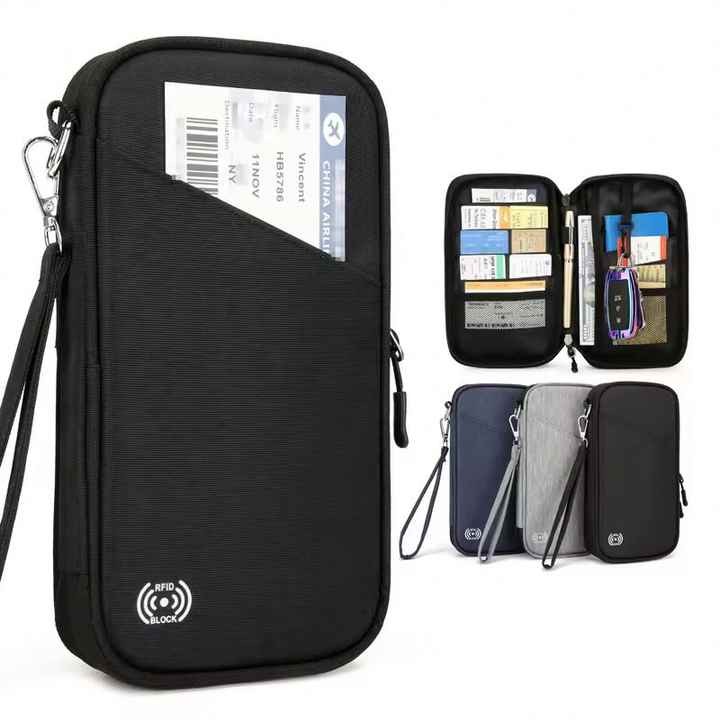 กระเป๋าสตางค์อเนกประสงค์ป้องกันการโจรกรรมทันสมัย วัสดุอ็อกซ์ฟอร์ด พกพาสะดวก ใช้จัดเก็บเอกสาร ป้องกันการสแกนข้อมูลบัตรประชาชน บัตรเครดิต
