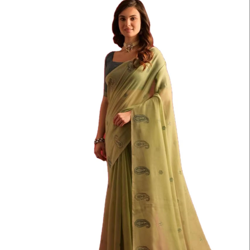 ส่าหรีผ้าคอตตอนเนื้อนุ่มพิมพ์ลายดูดีมีความต้องการทันสมัยสินค้าจำนวนมากทำด้วยมือ