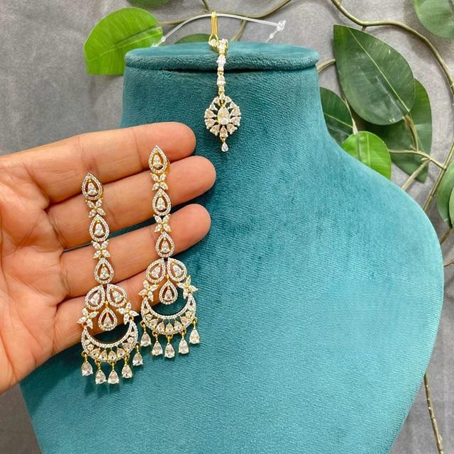 ต่างหูและติ๊กกะประดับเพชร CZ ดีไซน์ทันสมัย คุณภาพเยี่ยม ชุบทอง สวยหรู เหมาะสำหรับงานแต่งงาน สำหรับผู้หญิงและเด็กผู้หญิง