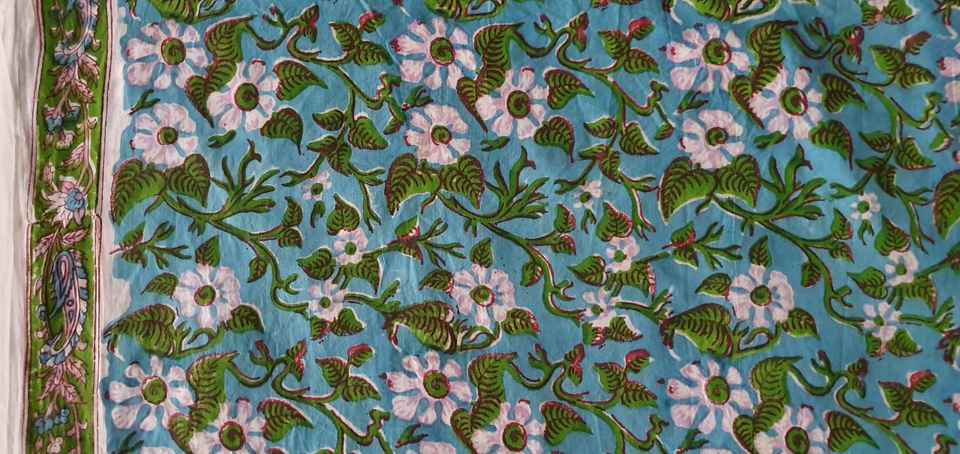 แฟชั่นสีฟ้าที่สวยงามพิมพ์ดอกไม้ผ้าฝ้ายชุดวัสดุบล็อกพิมพ์ผ้าย้อมผ้าอินเดียเสื้อคลุมผ้า