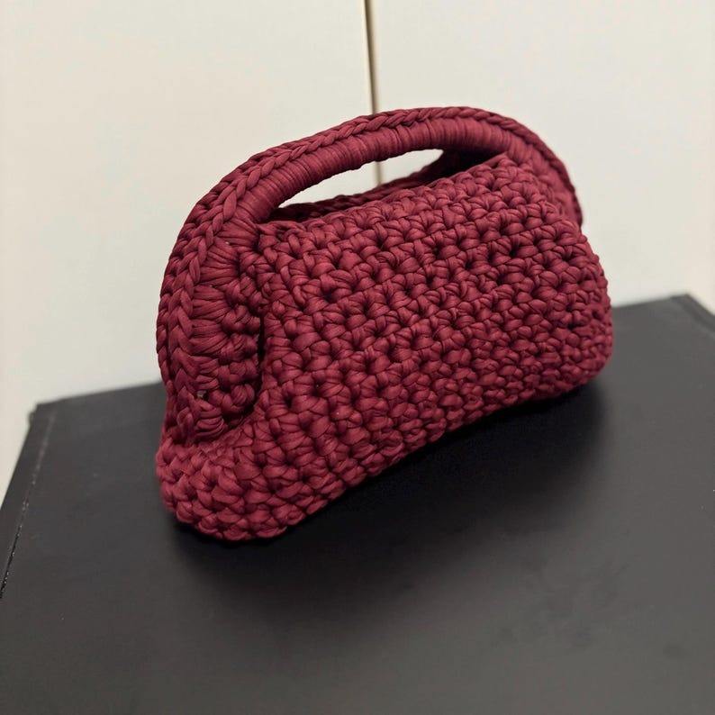 กระเป๋าคลัทช์ถักมือสีแดงเบอร์กันดีที่มีด้ามจับแฟชั่นสำหรับผู้หญิง
