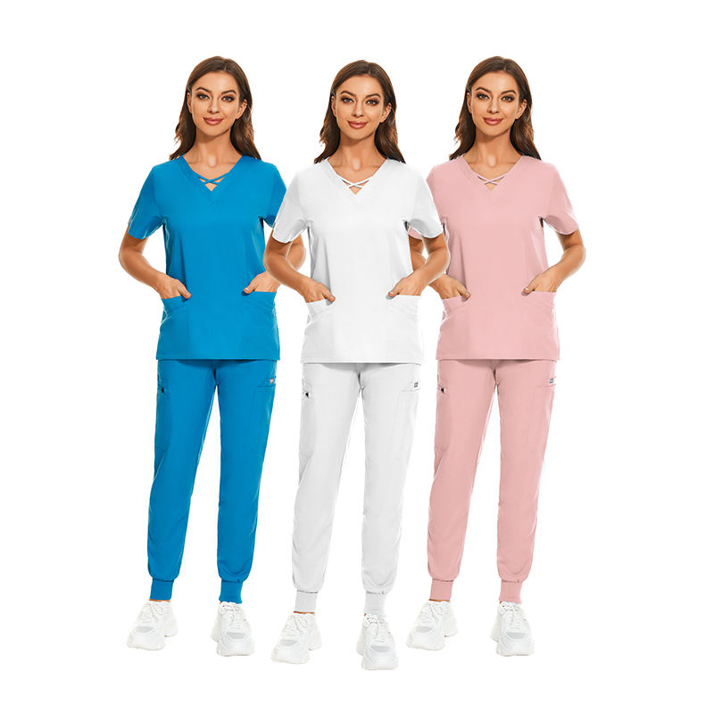 ชุดสครับทางการแพทย์3กระเป๋าสำหรับผู้หญิงชุดเครื่องแบบพยาบาลโรงพยาบาลเสื้อสายไขว้คอแนวแฟชั่นเบอร์กันดี