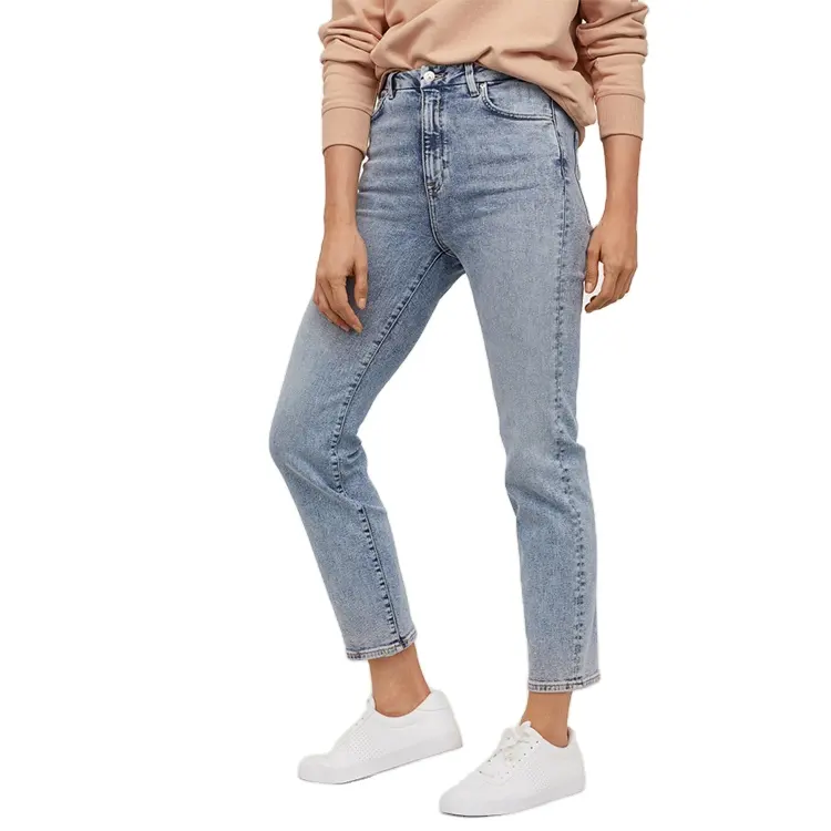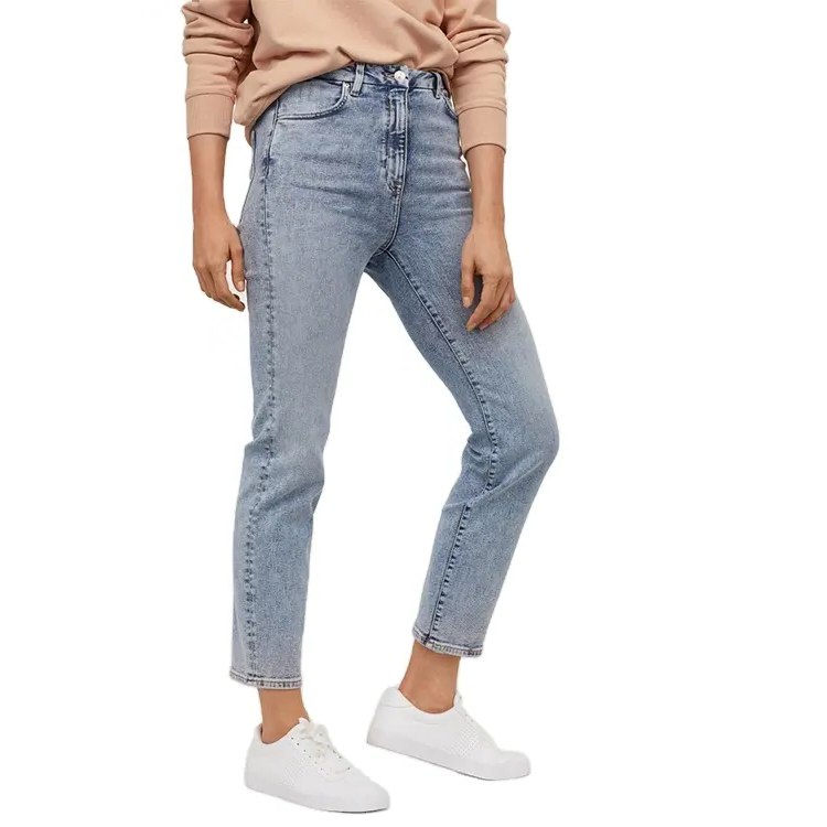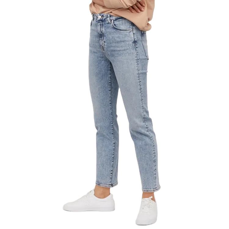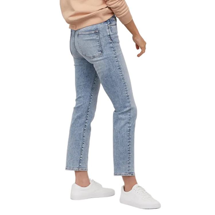 กางเกงยีนส์แฟชั่นลำลองสีพื้น,กางเกงเข้ารูปสีล้วนยาวถึงข้อเท้ากางเกงเอวกลางสำหรับผู้หญิงจากบังกลาเทศ