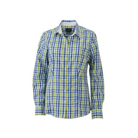 Fashionable Checkered Blouse for Ladies Solid Inserts at Collar and Cuffs Men's Stylish Shirt