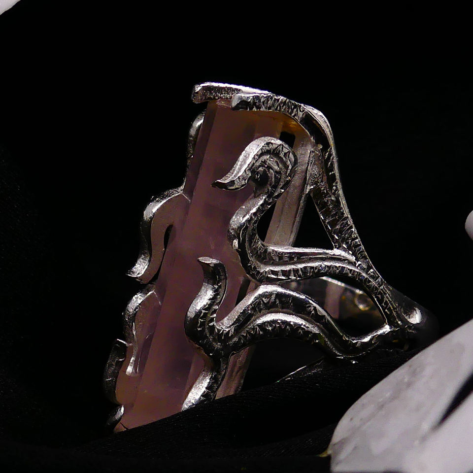 แหวนแฟชั่นคลาสสิกสำหรับผู้หญิง925เงินสเตอร์ลิงชุบทองพลอยควอตซ์ eose เครื่องประดับสไตล์ดิบ