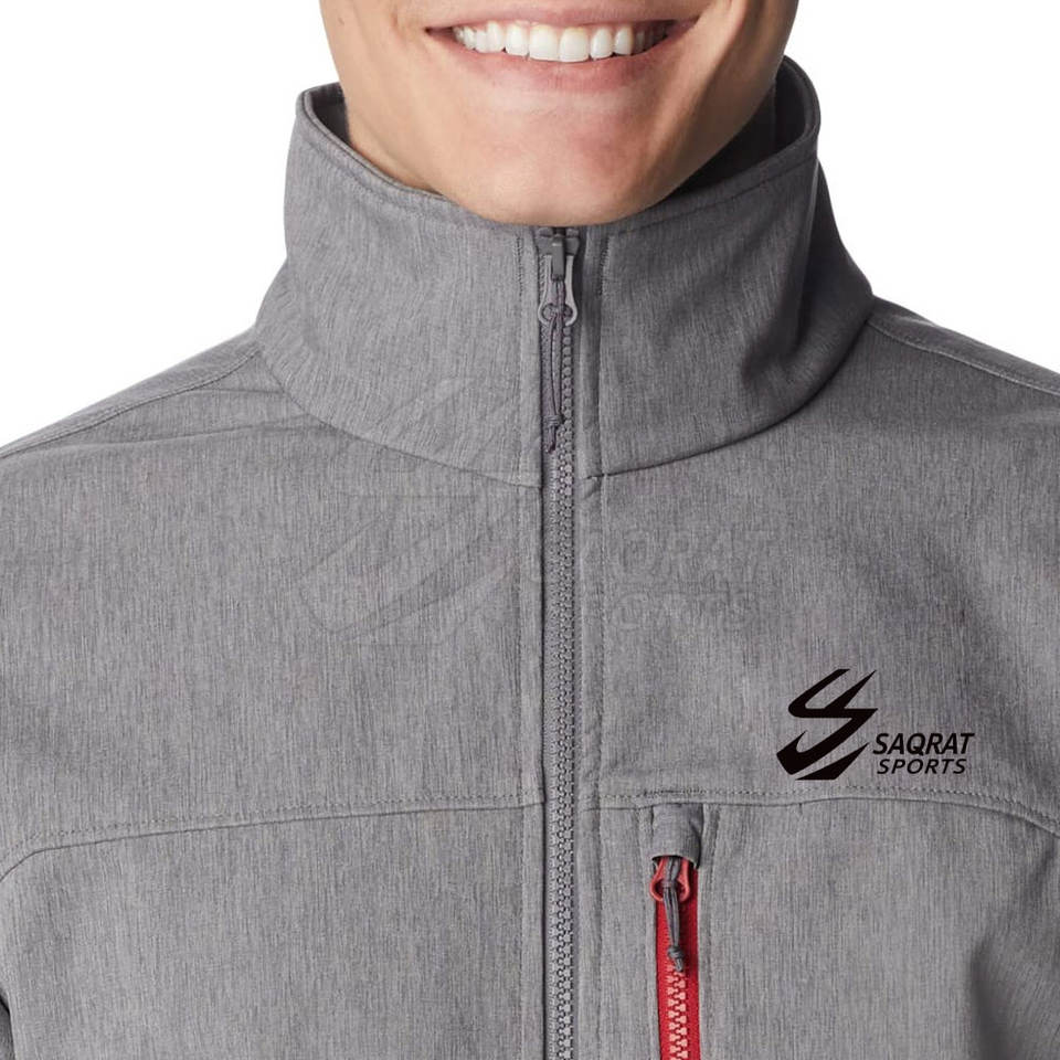 แจ็กเก็ตผ้านิ่มสำหรับผู้ชายผ้าไนล่อนเนื้อนุ่มใส่สบายทันสมัยมีโลโก้ด้านหน้าสำหรับผู้ใหญ่