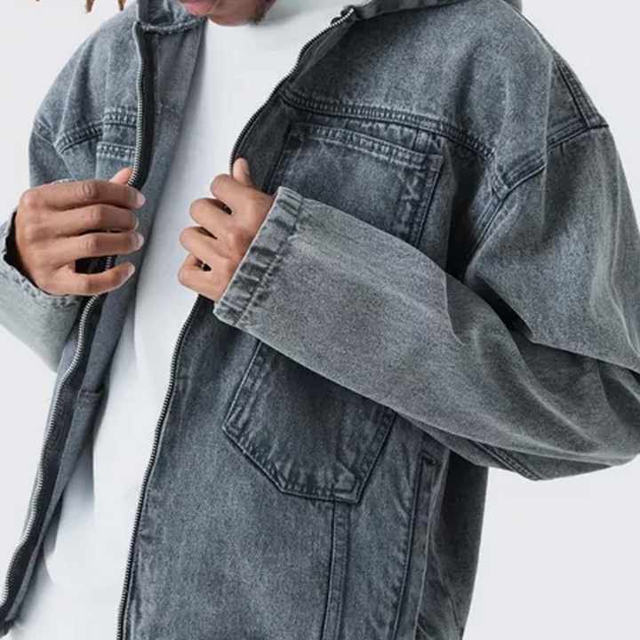 เสื้อแจ็กเก็ตมีฮู้ดของผู้ชายผ้าฝ้ายแฟชั่นล่าสุดเสื้อแจ็คเก็ตยีนส์ซักสบายๆเสื้อมีฮู้ดผ้าเดนิมสำหรับผู้ชาย