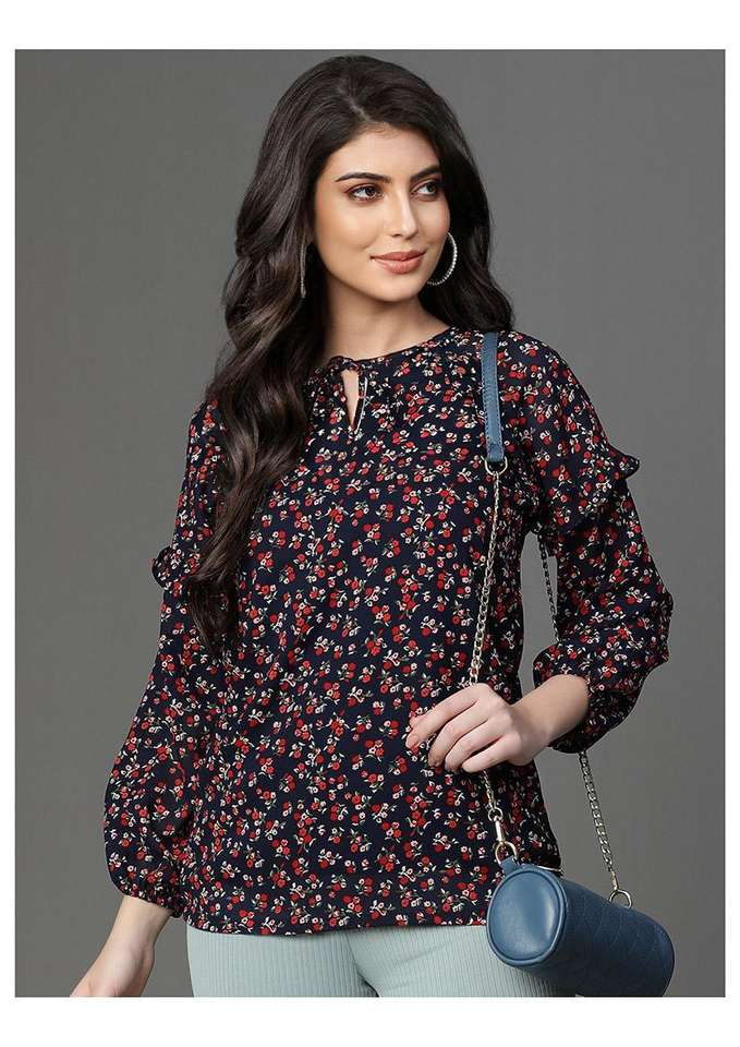 เสื้อแขนกระดิ่งผ้าเครปพิมพ์ลายดอกไม้ทันสมัย ระบายอากาศได้ดี สีพื้นเรียบง่าย เหมาะสำหรับเป็นชิ้นเด่นในงานเลี้ยงอย่างเป็นทางการ
