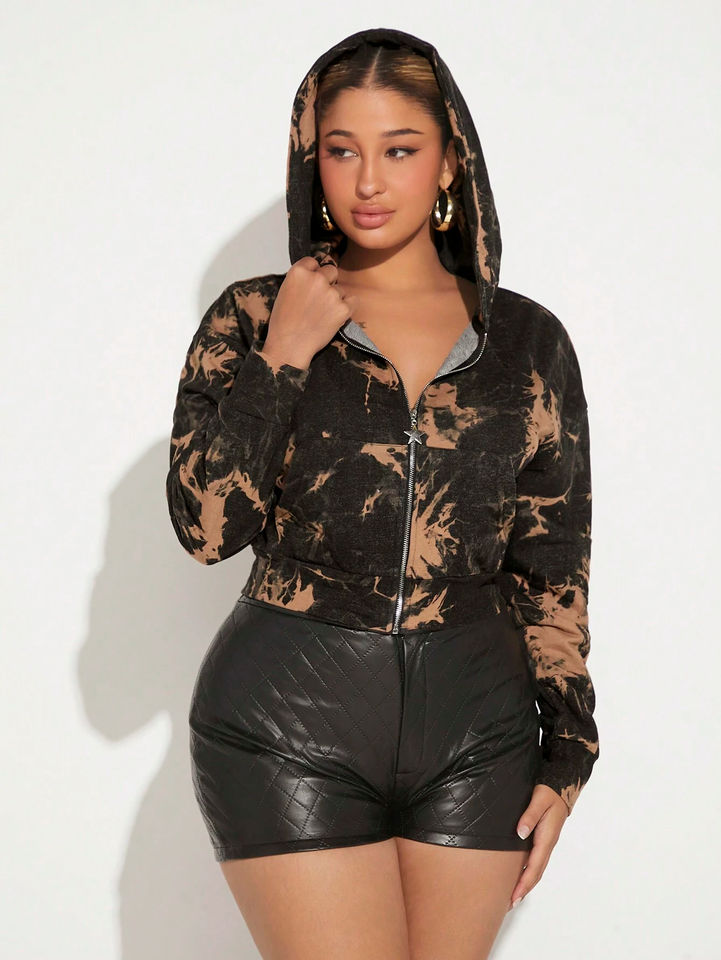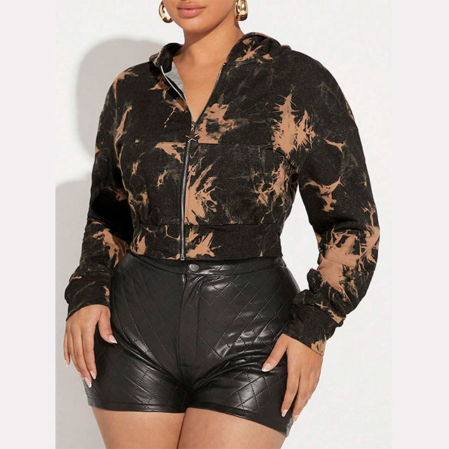 เสื้อฮู้ดมีซิปสำหรับผู้หญิงเสื้อครอปสกรีนลายกรดระบายอากาศได้ดีปรับแต่งได้แบรนด์สินค้าขายส่ง
