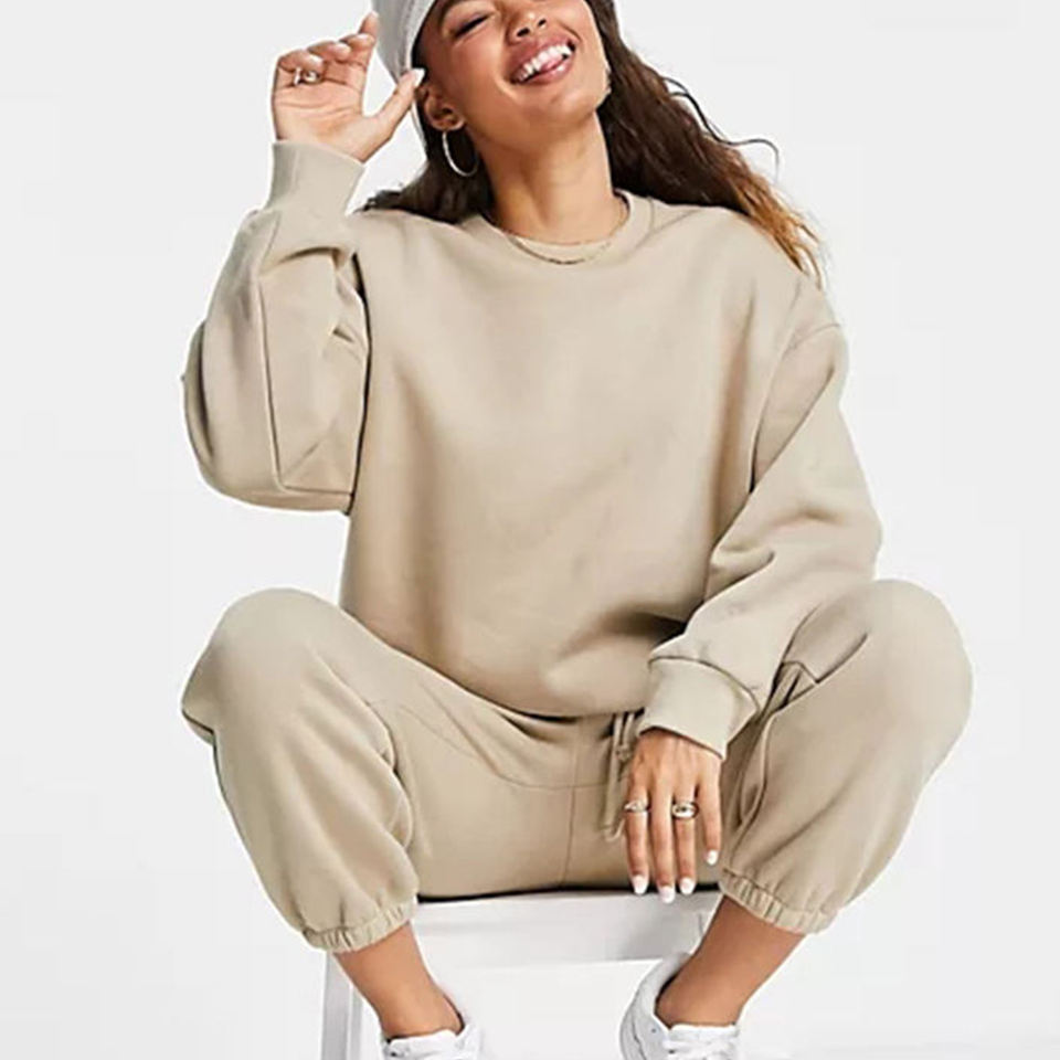 แฟชั่นที่กําหนดเองJoggerชุดหญิงผ้าฝ้ายHeavyสุภาพสตรีกีฬาเหงื่อชุดที่กําหนดเองขนแกะTracksuitsชุดสําหรับUnisex