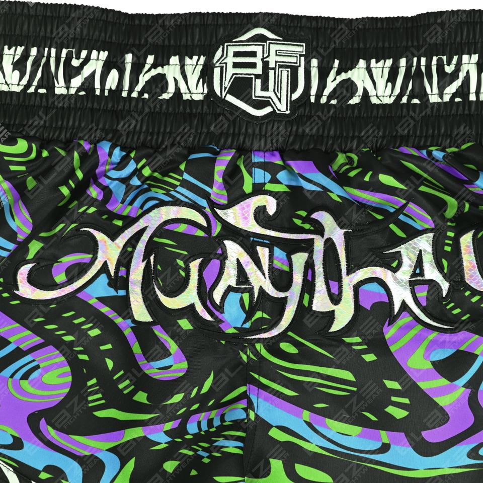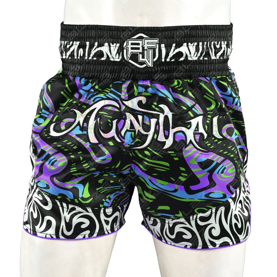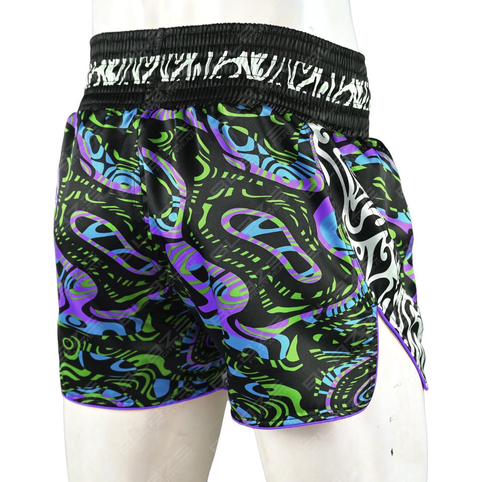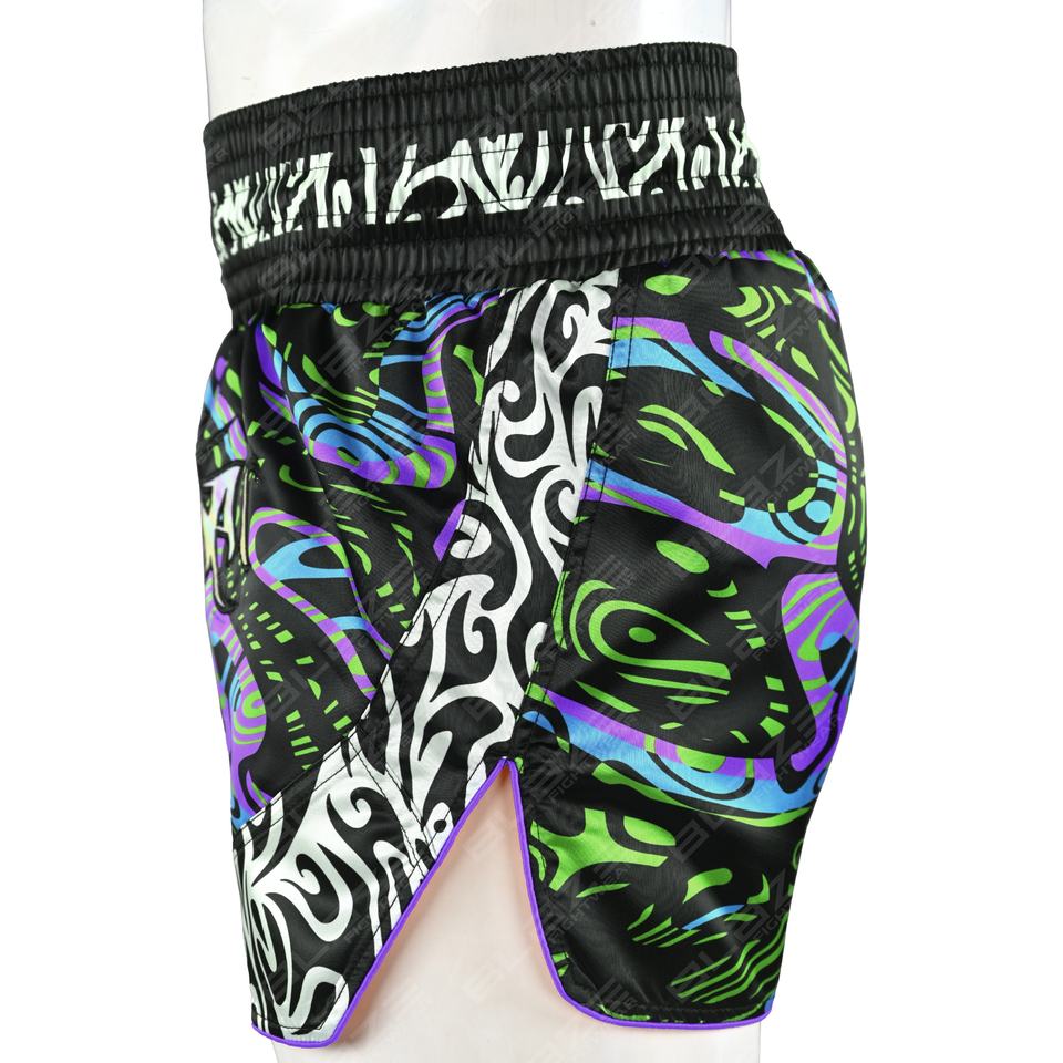 Blaze Fight Wear Custom Logo Thai Shorts Unisex Mid Waist 100% Polyester MMA Boxing Shorts Fashionable Breathable Board Pattern